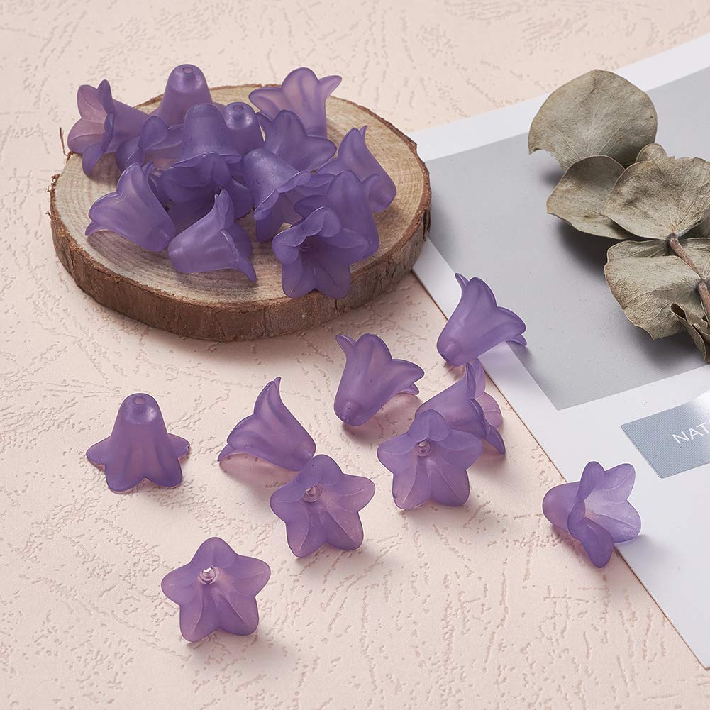 Pandahall 50 Stück Violette Blume Transparente Mattierte Acrylperlen Lose Perlen Kappen 16 X 12 Mm Für DIY Schmuckherstellung