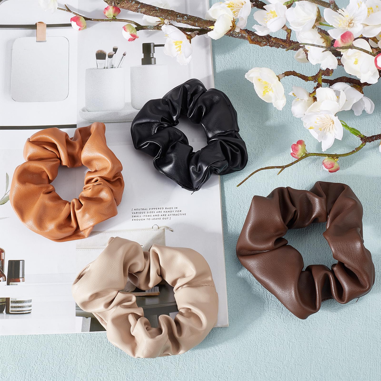 NICENEEDED 4 Stück Weiche Haargummis Aus PU-Leder, Haargummis Für