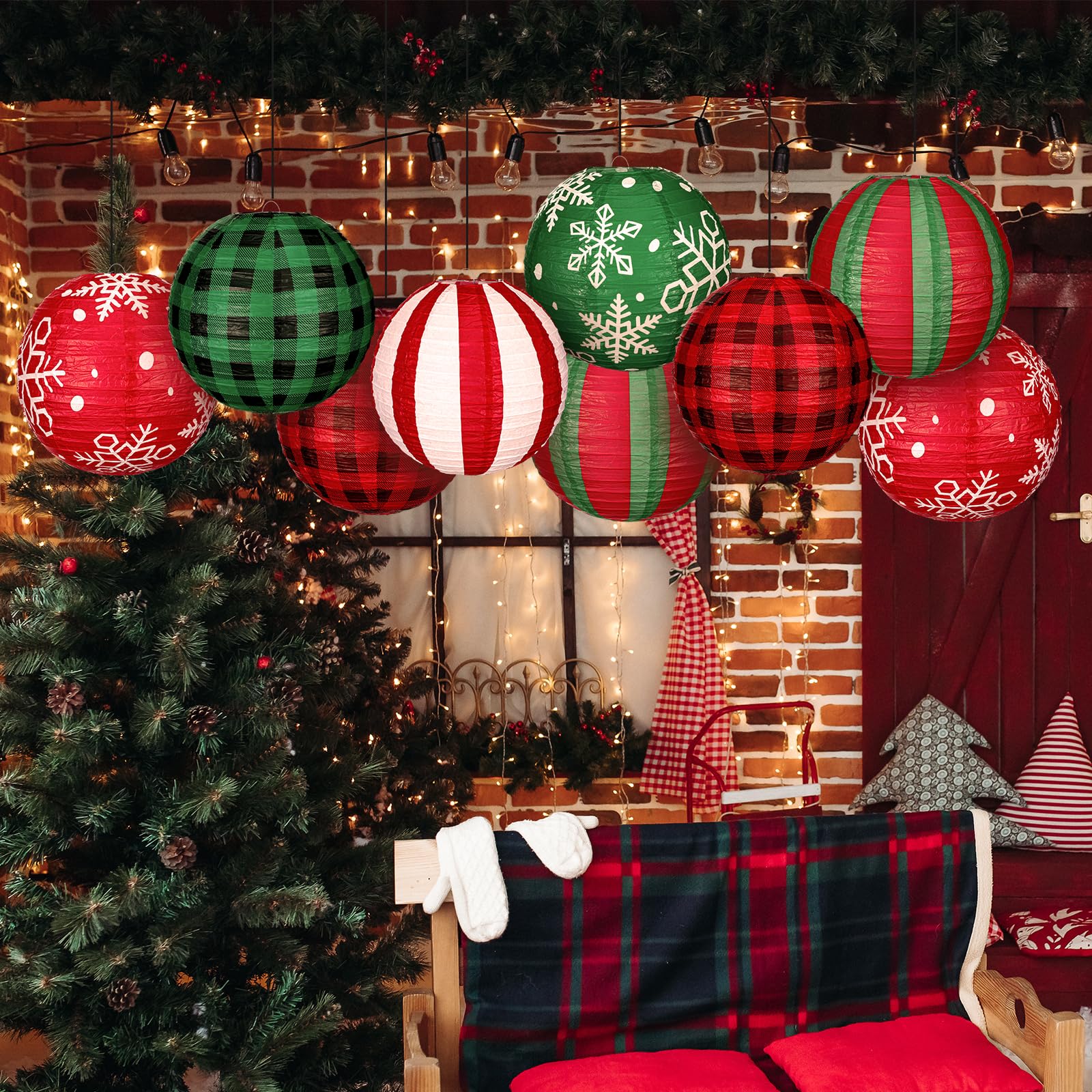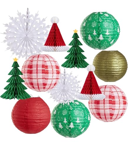 FANSU Weihnachten Papierlaterne Deko, Papierlaternen Set Papier Laterne Rund 5 Stück Weihnachten Hängende Papierlaternen Papier Laternen Feier Lampion Für Dekorative (Weihnachtsmann