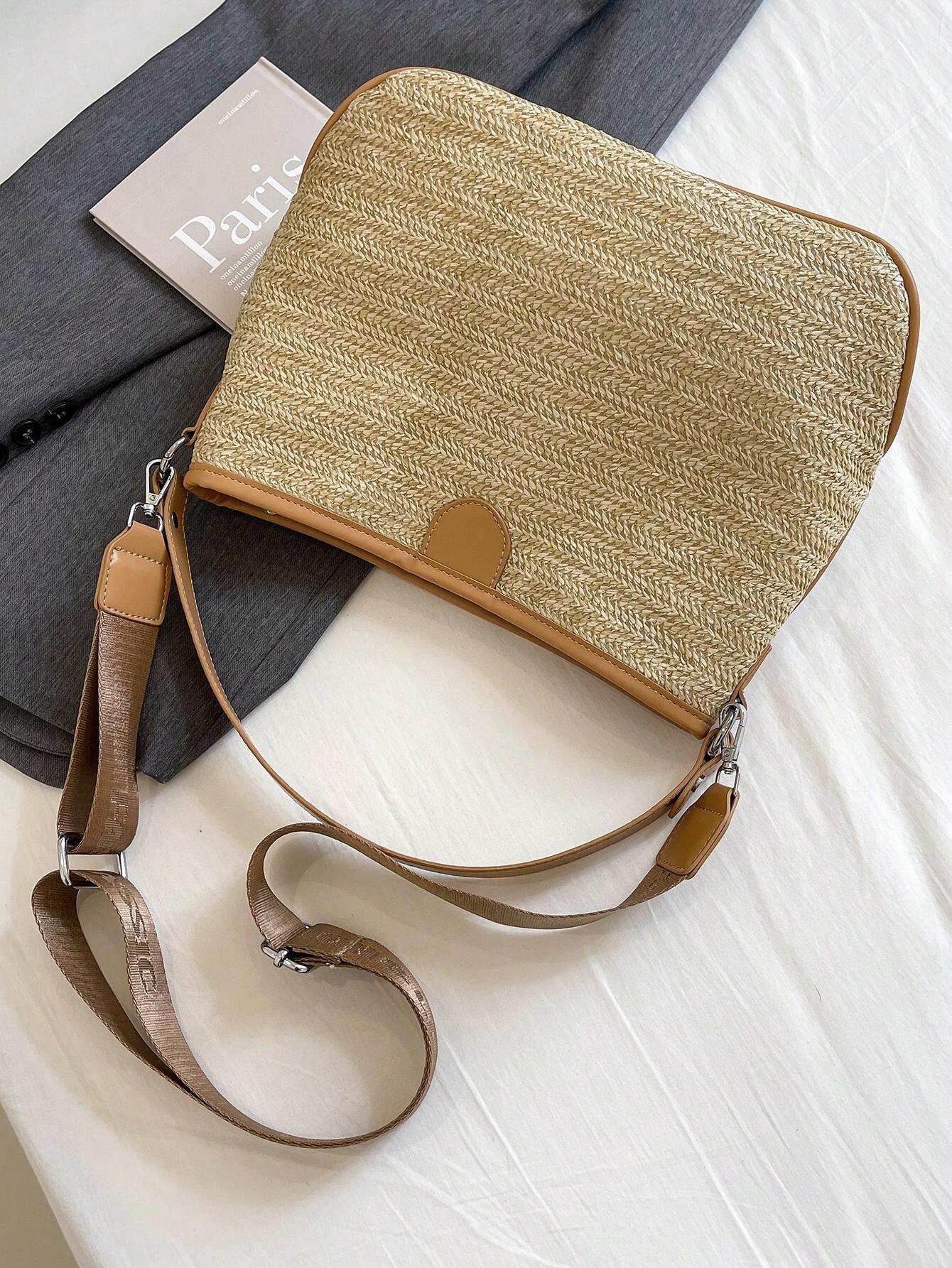 1 Stück Zweifarbig Gewebte Grastasche, Modische Und Geräumige