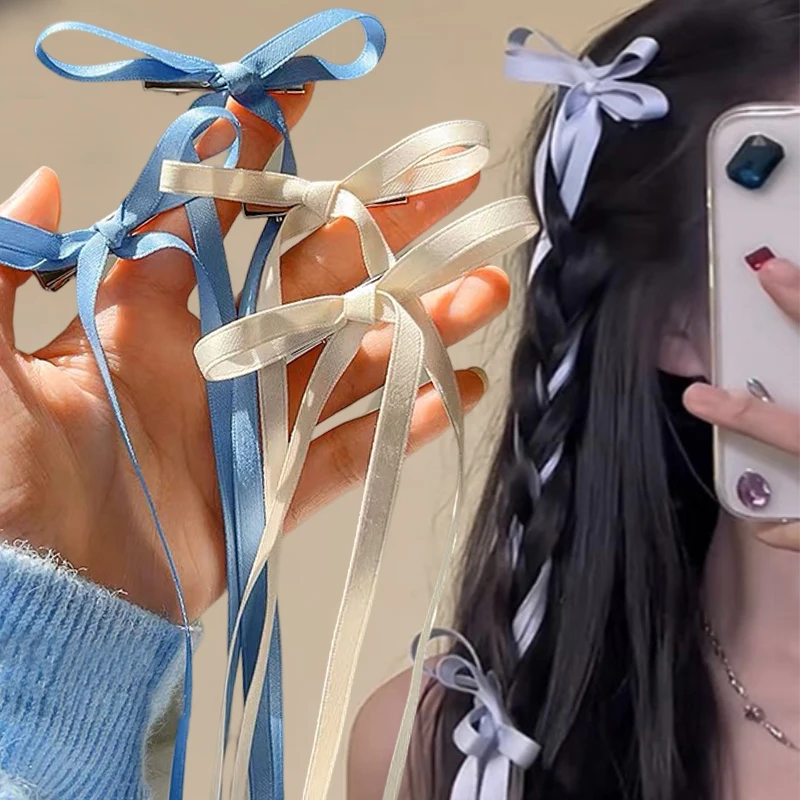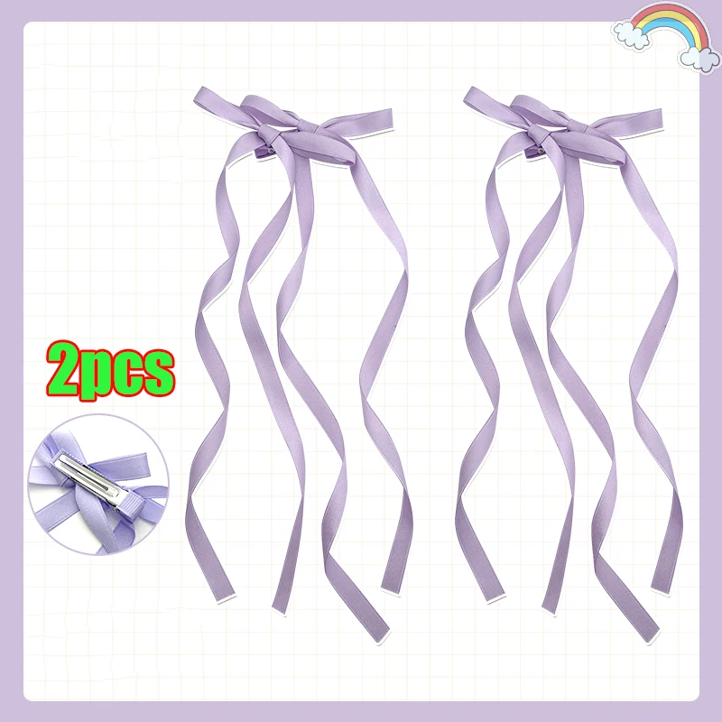 2 Stücke Süßigkeiten Band Quaste Bowknot Haars Pangen Süße Frauen Streamer Haarnal Mädchen Lange Schleifen Haars Pangen Kopf Clip Zubehör