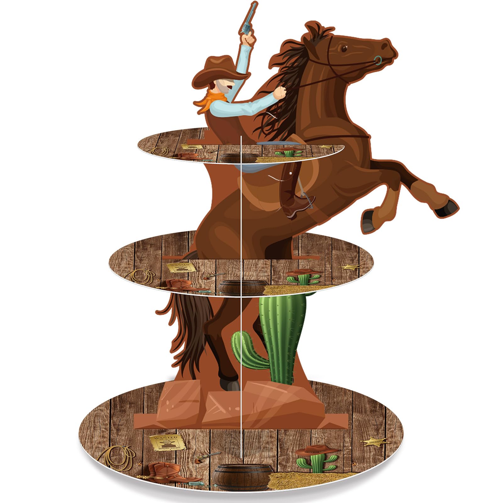 Haooryx Western Cowboy Party Dekoration Cupcake Ständer, 3 Etagen Wild West Holz Haus Scheunentür Cupcake Tower Karton Desserthalter Für Western Cowboy Thema Geburtstag Party Baby Shower Tisch