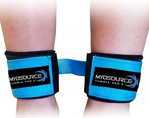 Myosource Kinetic Bands Tumble Pro X Ankle Straps Kit - Cheerleading Standing Tumbling Equipment Gymnastics Backhand Spring Trainer - Includes Flexibility Stunt Stretch Strap - Purple
