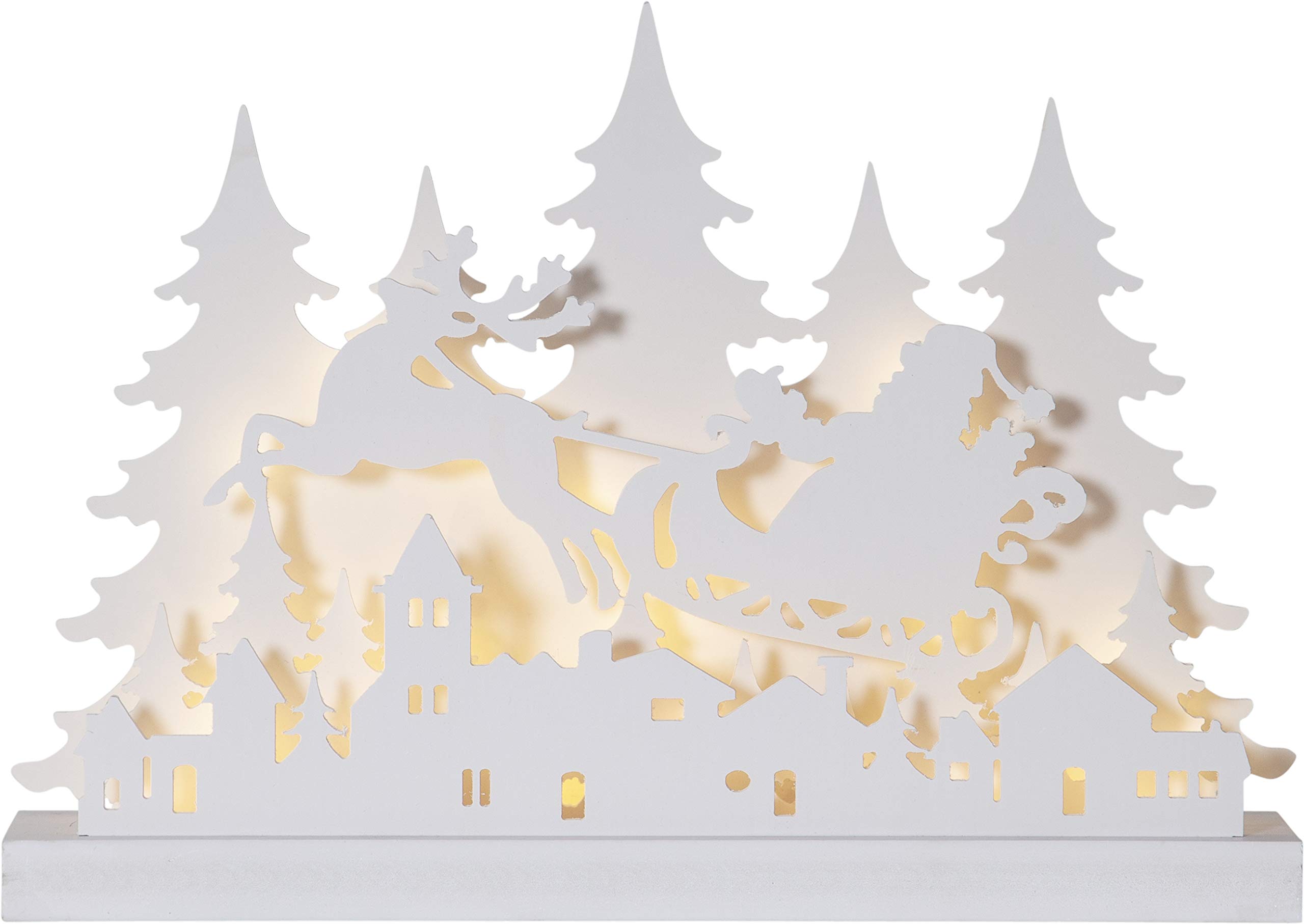 Star Rentiere, Santa,Wald 89 Warmwhite LED, Weiß, Ca. 75x60 Cm, Holz