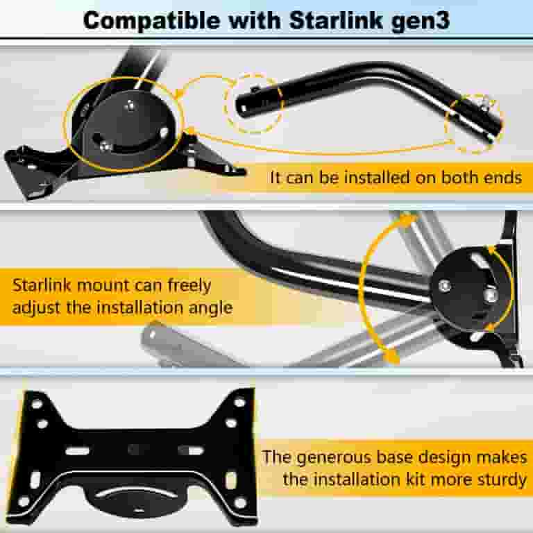 【Einfache Installation】 Der Starlink Gen 3 Stützhalterungsanschluss verwendet 4 Sechskantschrauben zur Befestigung an der STARLINK-Antennenschale, mit einfacher Handeinstellung und selbstklebenden Schwammpolstern im Lieferumfang enthalten, um Schäden an Ihrem Starlink-Gerät während der Installation zu vermeiden. Die Basis und die Stützstangen sind aus Edelstahl 403 Material, das Korrosionsbeständigkeit, Rostschutz und Verschleißfestigkeit bietet, was Haltbarkeit und Zuverlässigkeit für den langfristigen Gebrauch gewährleistet. 【Hohe Tragfähigkeit】 Hergestellt aus Edelstahl 403, kann unsere Halterung bis zu 50 kg tragen und bietet eine sichere und stabile Befestigungslösung für Ihr Starlink-Gerät. Starlink Gen 3 Kurze Wandhalterung, 360° drehbar für besseres Signal, Starlink Befestigungsset für Starlink Internet Kit Satellit, kompatibel mit Starlink Standard Gen 3 (V3) Dish 【Korrosions- und Rostschutz】Die Anschlüsse des Starlink-Installationssets 3., Generation werden im Metallstanz- und Lackierverfahren hergestellt. Qualitätssicherung: Unser erstklassiger After-Sales-Service sorgt für schnelle Unterstützung bei Fragen oder Bedenken, mit einem professionellen Kundensupport-Team, das innerhalb von 24 Stunden Lösungen bietet. Starlink Gen3 Fräser / Gen 3 Schüssel Wandhalterung Starlink Wandhalterung Kurze Für Starlink V2, Verstellbares Starlink Starlink Antennenhalterung Diese stabile Wandhalterung aus Metall ist ideal für die sichere Montage der Starlink Gen3 Antenne. Mit einer 360° Drehfunktion ermöglicht sie eine einfache Signaloptimierung für Innen- und Außenbereiche. Kompatibel mit Starlink Gen3: Perfekte Passform für die neueste Starlink-Generation Wichtiger Hinweis: Vor dem Anziehen der Stützstangenschrauben ist es notwendig, die Richtung auszurichten. 【Kompatibel mit Starlink Gen 3】Unser Montageset ist kompatibel mit Starlink Standard Generation 3, einschließlich eines Rohradapters und notwendiger Installationshardware. Einfache Installation mit Handbuch und Video: Der Starlink Gen 3 Mount wird mit einer detaillierten Bedienungsanleitung und einem Installationsvideo geliefert, die Sie Schritt für Schritt durch den Installationsprozess führen und eine schnelle und problemlose Einrichtung ermöglichen 【Verbesserter Schutz】Unser Starlink Gen 3 Stützständer verfügt über eine größere und breitere U-förmige Basis, 3 Sätze Schrauben zur Sicherung der Basis und der Stützstange, sodass Sie den Installationswinkel für zusätzlichen Schutz vor starkem Wind und Erschütterungen für Ihr Starlink-Gerät einstellen können. Schluss mit der endlosen Suche: Produktdaten und Angebote – einfach und übersichtlich.
