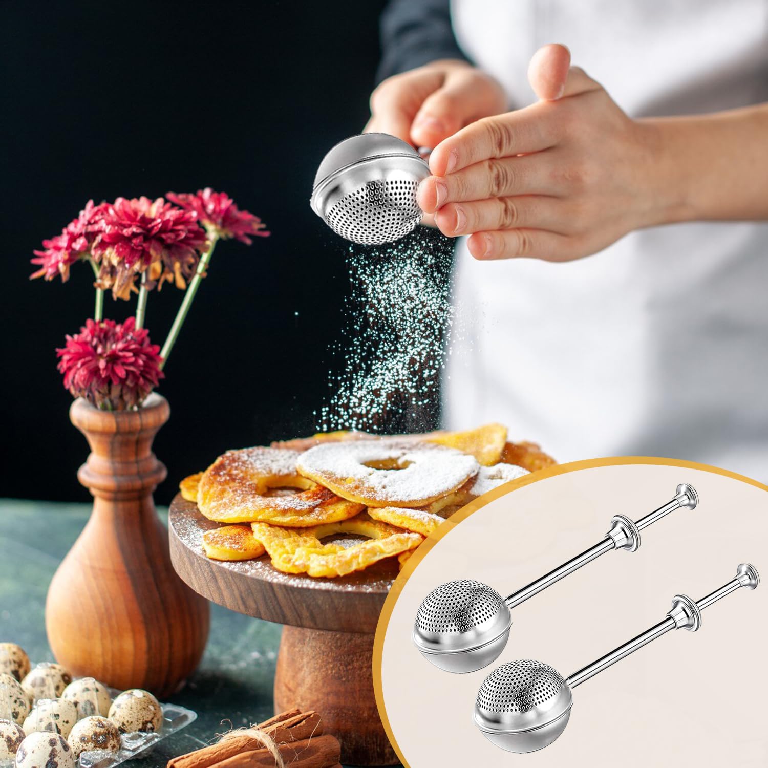 Puderzuckerstreuer, Puderzucker-Sprinkler Zum Backen, Edelstahl-Zuckerstreuer, Edelstahlgriff, Staubstab Für Zucker, Mehl Und Gewürze, Für Tee, Gewürze, Gewürze (4 Stück