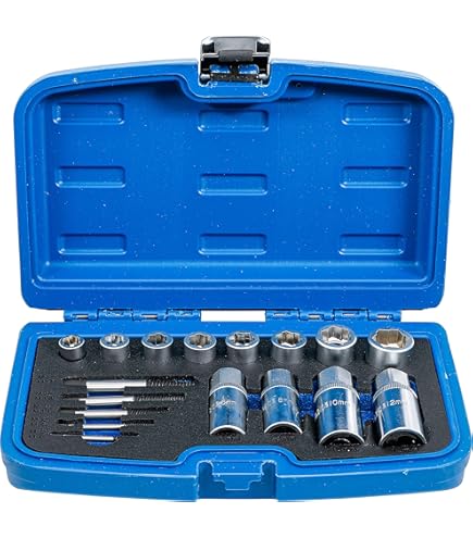 Stehbolzen/Stiftschraube (M8x30) + Kupfermutter für Abgaskrümmerbefes, 2,65 [mm]: 10d [mm]: 29d x L [mm]: 29 x 75d1 [mm]: 22L [mm]: 756-Kant [mm]: 22Leistung [mm]: 10[g]: 240[kg]: 0,240 Bitte beachten Sie: Dekoration nicht im Lieferumfang enthalten. Eigenschaften:Antrieb über denSechskant oder mit einer Knarre 1/2Zum Anziehen oder Lösen von Stehbolzen Technische Daten: A max. Inklusive zusätzlicher Werkzeuge oder Aufsätze , Kompakte Aufbewahrung , Sicherheitsmerkmale Der Stehbolzenausdreher von Facom ist ein hochwertiger Steckschlüssel-Adapter, der speziell für das Anziehen und Lösen von Stehbolzen entwickelt wurde. Mit einem Anschlussmass von 1/2 Zoll ermöglicht er eine einfache Handhabung und ist mit einem Sechskant-Antrieb ausgestattet [mm]: 10d [mm]: Bitte beachten Sie: Dekoration nicht im Lieferumfang enthalten. Facom Stehbolzenausdreher Mit Walze 1/2" 287B.14