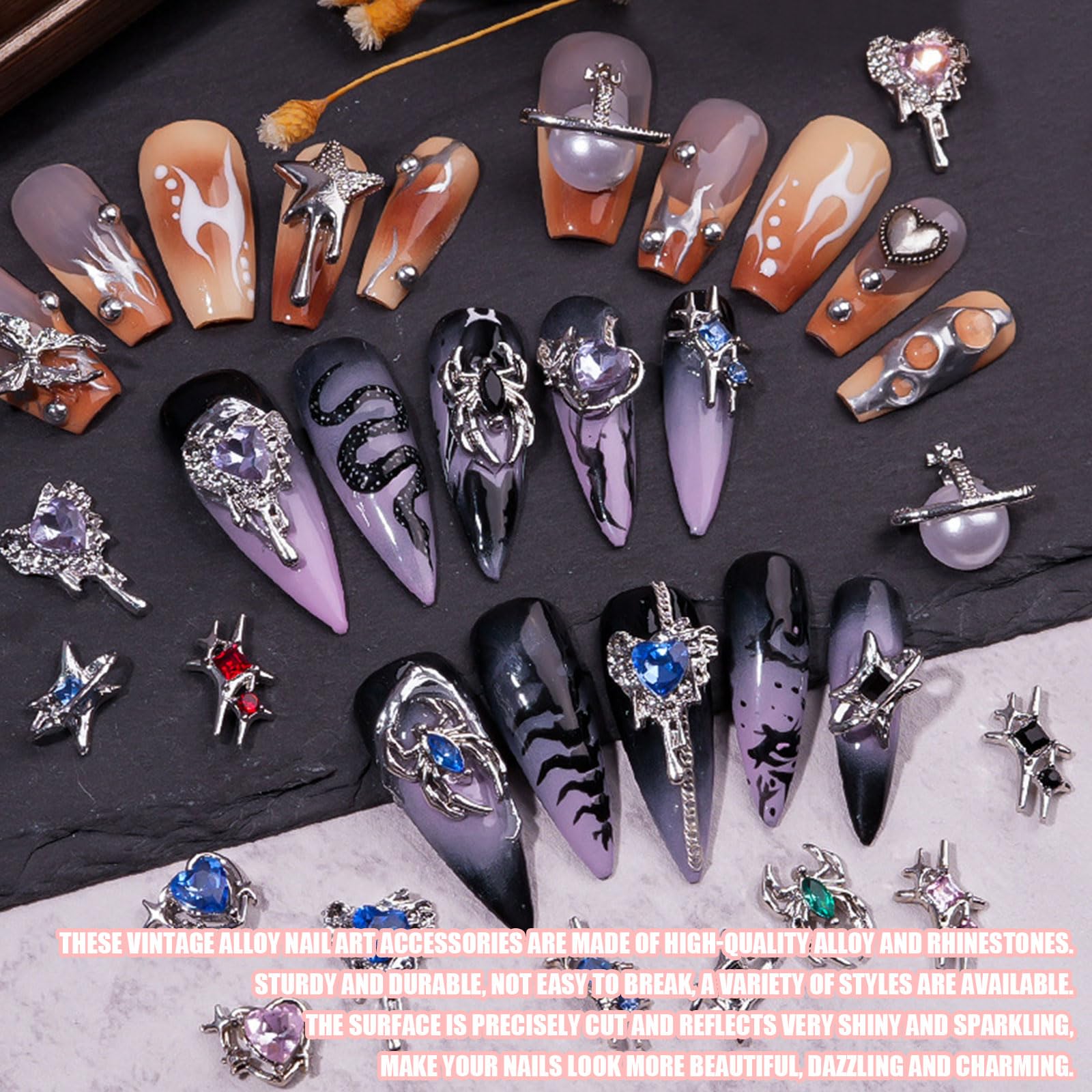 Different Style Nail Charms]Sie erhalten 26 Stück verschiedene Stile Nail Art Charms, genug für Sie, um in der Partei oder im täglichen Leben zu verwenden, Sie können es auch als Geschenk mit Ihrer Familie und Freunden teilen Overlays Nägel WLLHYF Stern-Nagel-Chars, 10 Stück, 3D-Nagel-Strasssteine, Glänzende Nagel Charms 【Material】Hergestellt aus Metalllegierung und Strasssteinen, fest und zuverlässig, glatt und nicht leicht zu verblassen, so dass Ihre Nägel heller aussehen. 【Easy to Use】Halloween Nägel Dekorationen können leicht auf natürliche und künstliche Nägel angewendet werden. Von Schuhen bis zur Kleidung, von Sportgeräten bis zu Accessoires. 10 Stück 3D Snake Nail Charms, Schlange Welle Nagel Schlange Metall... 【Weite Anwendungen】3D Legierung Nagelschmuck kann nicht nur für Nagelkunst verwendet werden, sondern auch zum Basteln, Grußkarten, Handyhüllen, Schmuckherstellung, Haarschmuck und so weiter. Teaaha 100 Stück Schleifen Nagel Chars Y2k 3D Harz Kaelienblue