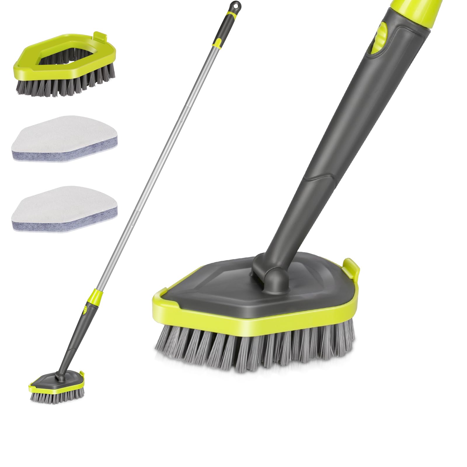 MASTERTOP Schrubber Mit Stiel Badezimmer, Reinigungsbürste Bad Schrubber Mit 3 Austauschbarer Bürstenkopf, Dusche Schrubberbürste Fliesenbürste Mit Langem Stiel Für Badewanne,Küche,Glas,Fliesen
