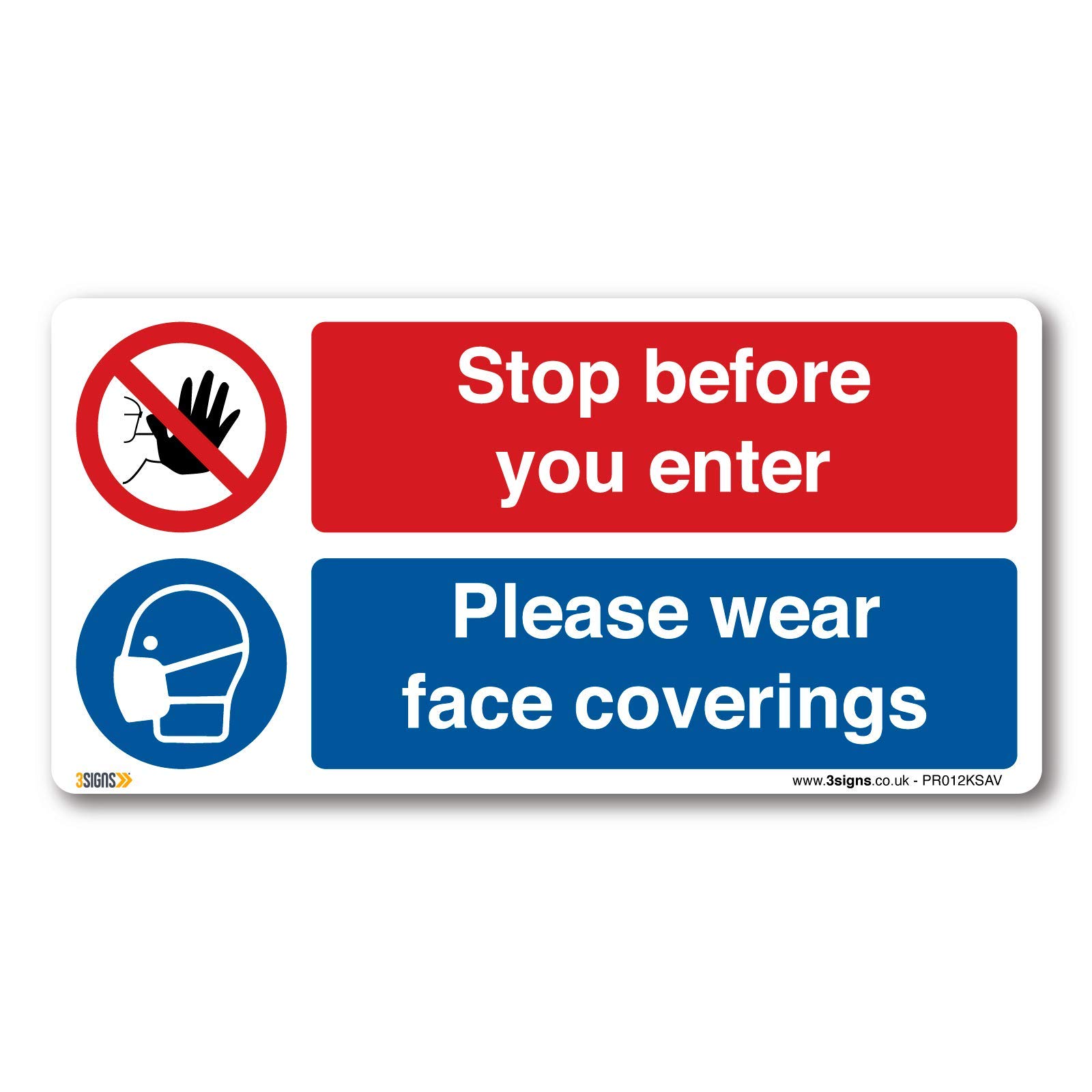 Schild Mit Aufschrift "Stop Before You Enter, Please Wear Face