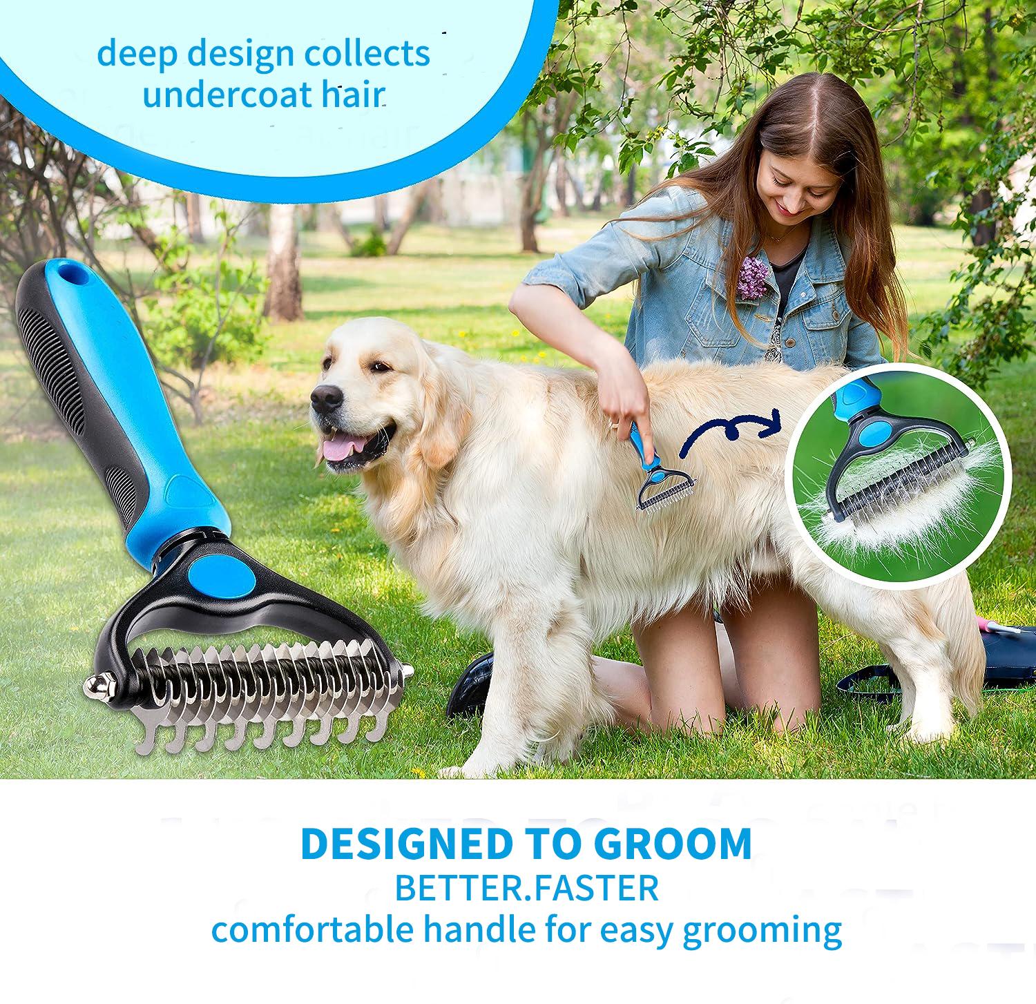 Zeigen Sie Ihre Liebe zu Haustieren mit diesem praktischen und durchdachten Werkzeug! Kämmen Sie sie immer in Haarwuchsrichtung., 3., Beginnen Sie mit der zahndünnen Seite für hartnäckige Verfilzungen und Verfilzungen., 4., Mit der zahndichten Seite zum Ausdünnen und Enthaaren abschließen, um das beste Pflegeergebnis zu erzielen., Vorsichtsmaßnahmen: 1., Bitte halten Sie das Pflegewerkzeug fern von Feuer und hohen Temperaturen., 2., Bitte bewahren Sie das Pflegewerkzeug außerhalb der Reichweite Ihres Haustieres oder eines Kindes auf., 3., Bitte halten Sie das Pflegewerkzeug nach dem Gebrauch sauber. Der rutschfeste Gummigriff bietet einen komfortablen Griff, wodurch die Fellpflege für Haustierbesitzer einfacher und effizienter wird. Der zweiseitige Entfilzungskamm aus der kooa-Pflegeserie leistet bei der Fellpflege Ihres Haustiers gute Dienste. Besonders gut eignet sich das Utensil zum Entfilzen dichten Fells bei Hunden sowie zum Entfernen loser Haare und zum Entwirren Produktbeschreibung Produktname: Haustier-Kamm mit offenem Knoten. Es ist ein ausgezeichnetes Geschenk für jeden, der sein Haustier sauber, gesund und gepflegt halten möchte. Die abgerundeten Spitzen des Kamms massieren die Haut, fördern die Durchblutung und sorgen für eine schmerzfreie Fellpflege. Entfernt sanft Filz und Knoten. Sanft für Ihr Haustier: Unsere Fellpflegebürste ist so konzipiert, dass sie sanft zur Haut Ihres Haustieres ist und gleichzeitig effektiv Verfilzungen, Verfilzungen und loses Fell entfernt. Kaufe Haustierpflegewerkzeug, 2-seitiger Unterfellrechen für Hunde und Katzen, sicherer und effektiver Entfilzungskamm zum Entfernen von Verfilzungen und Verfilzungen – kein lästiges Haarausfall mehr zum Preis ab 17 Anwendung: Hunde, Katzen, Kaninchen, Pferde und alle haarigen Haustiere., Funktion: Fellpflege. NA 2-in-1 Haustierpflege-Werkzeug, Entfilzungskamm für Hunde und Katzen, 2-seitiger Unterfellrechen, Katzen-Mattfellentferner für langhaarige Katzen, Hundeverfilzungen entfernen (blau Nach dem Waschen immer trocken halten., 4., Bitte seien Sie vorsichtig bei der Verwendung des Fellpflege-Werkzeugs und vermeiden Sie unsachgemäße Verwendung, die Verletzungen Ihres Haustieres verursachen könnte. Vom Deutschen Schäferhund bis zum Kätzchen ist es ein vielseitiges Werkzeug, das das Fell Ihres Haustieres gesund und sauber hält. Hochwertiges Material: Die Zähne des Hunde-Enthaarungswerkzeugs sind aus Edelstahl und gleiten leicht durch das Fell, ohne Schaden zu verursachen. Perfekt zum Entfernen von losem Fell, Knoten und Unterwolle, ideal für kleine, mittelgroße und große Hunde sowie Katzen. Der zweiseitige Kamm hilft durch hartnäckige Matten zu arbeiten und bietet Schutz, ohne die Unterwolle des Haustiers zu zerkratzen. Merkmale: Die abgerundeten Klingen der Hundebürste schneiden schnell durch verfilztes oder verknotetes Fell ohne Schaden zu nehmen