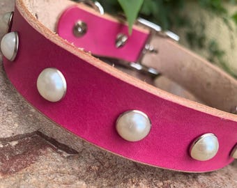 Hundehalsband, Leder, Verstellbar, Mit Strasssteinen, Rosa / Größe M