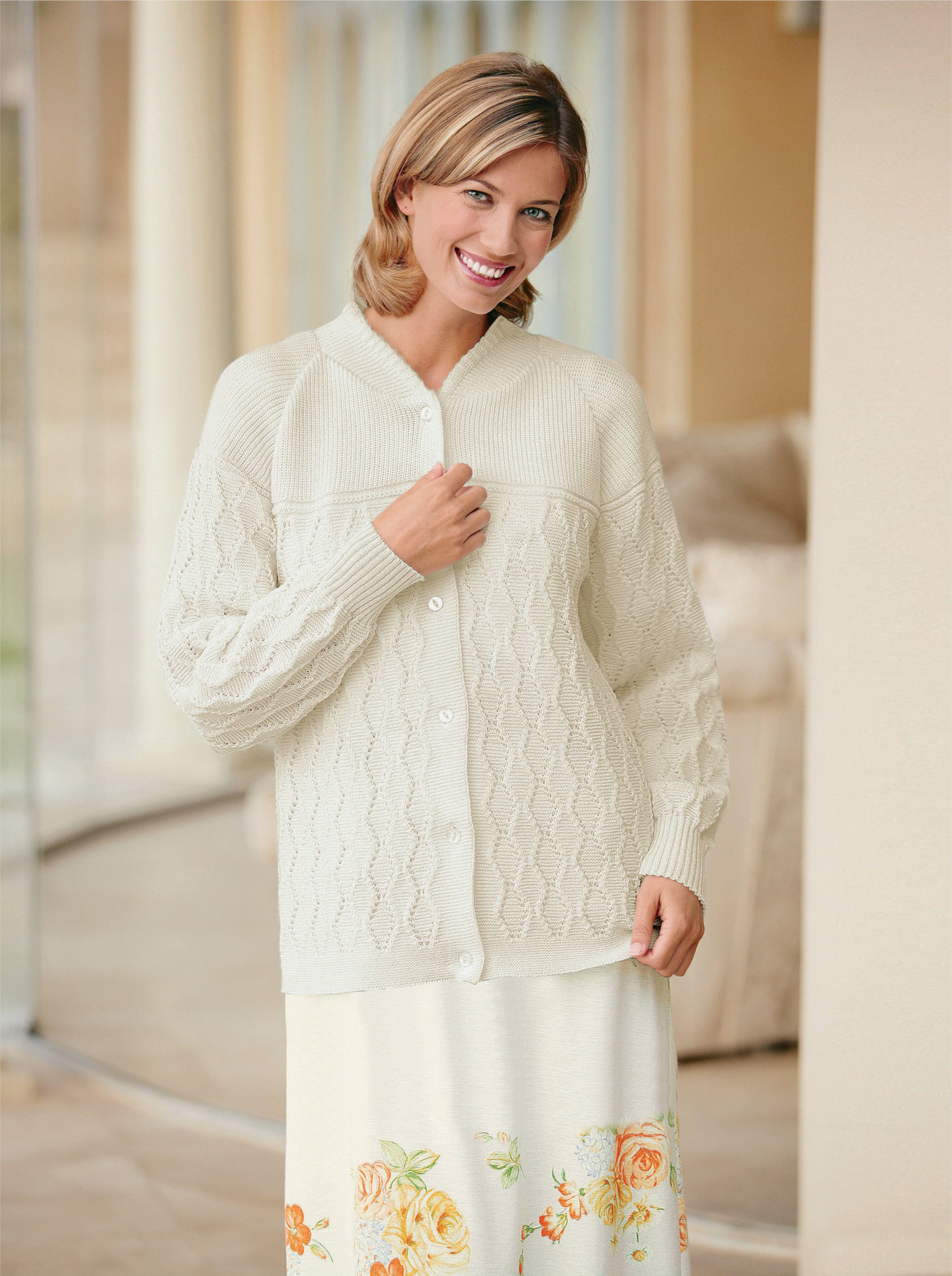 Damen Angora Bettjäckchen / Strickjacke - Edles Jacquard-Muster