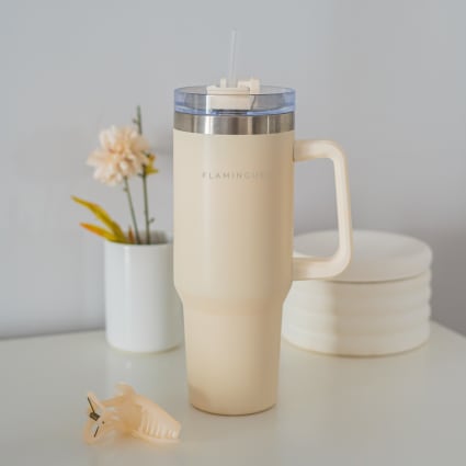 AYA&IDA Thermobecher Mit Strohhalm, Creme Beige - Thermobecher