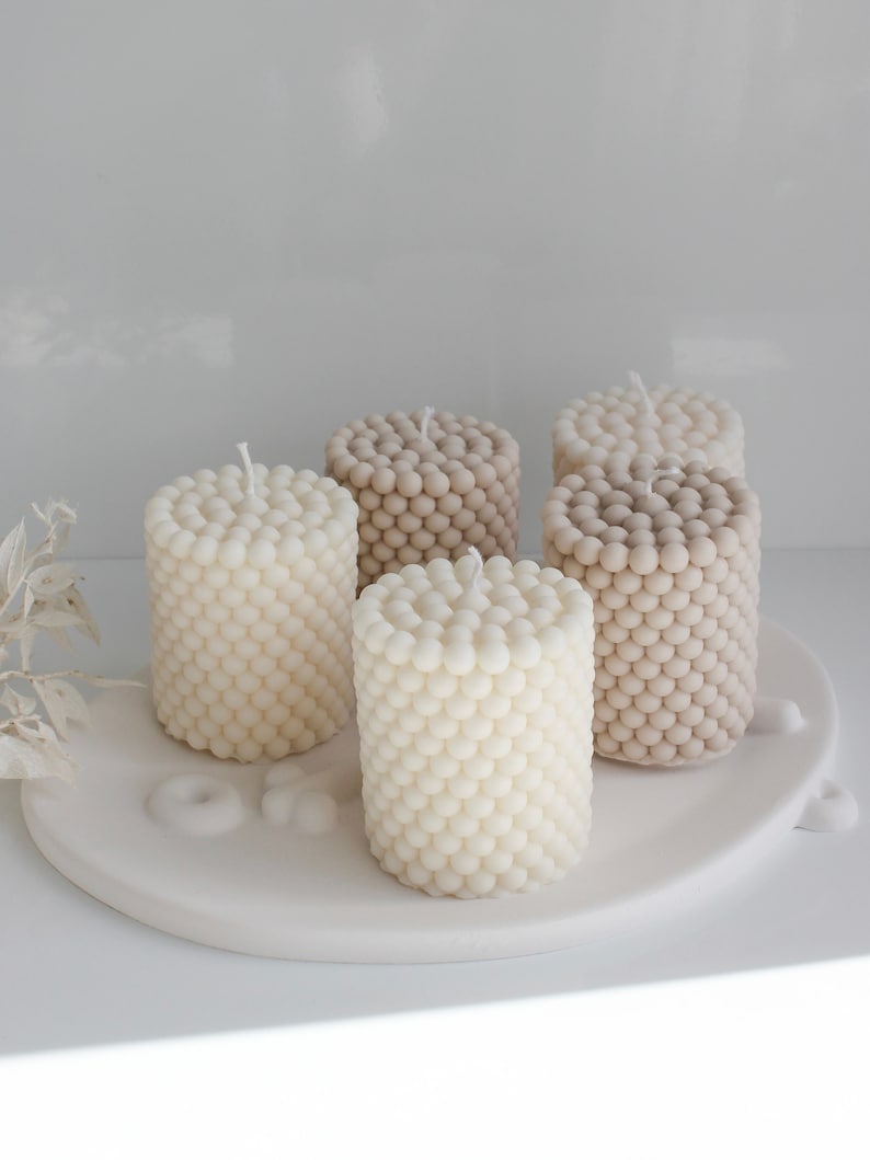 Riesiges Trio Aus Gerippten Stumpenkerzen I Ästhetisches Dekor Aus Sojawachs I Einzigartiges Geschenk I Home Decor