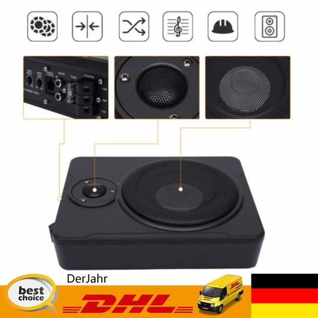 Auto Subwoofer Jiumxliu 8 Zoll 300W Kompakt Kfz Aktiv Bassbox Ultra Dünn Aktiver Subwoofer Schwarzes Aluminium Gehäuse Mit Kabel Set Aktiv Subwoofer Für Auto KumuJ 8'' 600W Autoradio Bass,Box Aktiv Subwoofer,Kompakt Lautsprecher Auto Untersitz Active Stereo VerstäRker Bassbox UltradüNner,Car Audio Amplified Slim Amplifier Kfz Aktivwoofer 🔊 PREMIUM-MATERIAL: Dieser Auto-Subwoofer besteht aus einer Aluminiumlegierung, einem Edelstahlgehäuse und ist langlebig. Kann direkt unter dem Beifahrersitz installiert werden. Hervorragende Niederfrequenzleistung, reine Musikausgabe und Soundeffekte., 1., Wiring: three wires must be connected (If there is no sound after installation, please check whether the wiring is connected to the three wires: 12v to the battery positive stage, REM to the host ACC or 12v in series, GND ground) 2., Adaptation: all cars with 12V power supply can be used 1., Verdrahtung: Es müssen drei Drähte angeschlossen werden (Wenn nach der Installation kein Ton zu hören ist, überprüfen Sie bitte, ob die Verkabelung mit den drei Drähten verbunden ist: 12 V an die positive Batteriestufe, REM an den Host-ACC oder 12 V in Reihe, GND-Masse) 2., Anpassung: alle Autos mit 12V Stromversorgung können verwendet werden Produktspezifikationen: 1., Nennleistung: 600W 2., Frequenzgang: 20 Hz - 150 Hz 3., Impedanz: 4Ω 4., Spannung: 12V 5., Signal-Rausch-Verhältnis: 90 dB 6., Material: Aluminiumlegierung Lieferinhalt: 1 * Lautsprecher 1 * Remote-Kabelsatz 1 * Schraubsatz Gilt für alle Fahrzeuge, die mit 12 V betrieben werden. 🔊Hochwertiger Soundeffekt: Dieser 8-Zoll-Tieftöner verfügt über eine hervorragende Niederfrequenzleistung, eine reine Musikausgabe und Soundeffekte, die noch auffälliger sind. Eton UG BMW 20 SUB U Ultmatver 20cm Plug and Play BMW Unterstz... Nakamichi - Aktiv Subwoofer Untersitz 1500W Entdecke 8" 600 Watt Auto Untersitz Subwoofer Kompakt Kfz Aktiv Bassbox Mit Kabel Set DE in großer Auswahl ✓ Vergleichen Angebote und Preise ✓ Online kaufen bei ✓ Kostenlose Lieferung für viele Artikel! 🔊Automatische Wärmeableitung: Auf beiden Seiten befinden sich mehrere Wärmeableitungslöcher, um die Wärmeableitung zu gewährleisten und ein Ausbrennen der Lautsprecher zu vermeiden.
