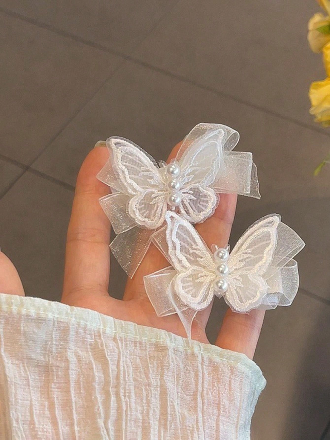 3 Stück Super Feen Weiß Gaze Schmetterling Perl Haarspange, Niedliche