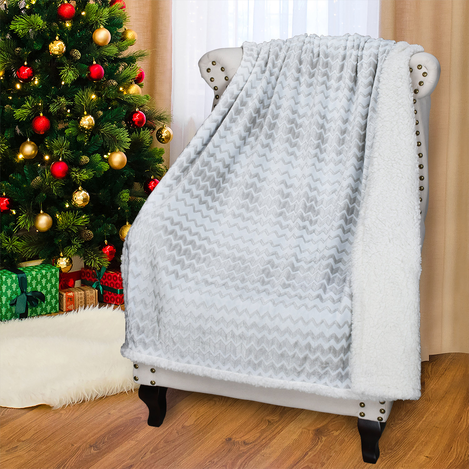 Catalonia Classy Sofadecke Mit Doppeltem Mikroplüsch-Sherpa-Fleece, Superweich, Geeignet Für Alle Jahreszeiten, Flauschiger Plüsch, Kuschelige, Dicke Couchüberwürfe,Chevron-Druck Holzkohle,150x130 Cm