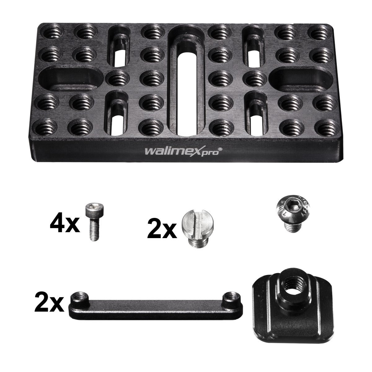 Spigot Adapter Lens Support For Mutabilis/Aptaris Walimex Pro Lieferumfang:Aptaris Blitzschuhadapter inkl., Schrauben Für LED, Mikrofone, Monitore und vielem mehr Mit dem Aptaris-Blitzschuhadapter von Walimex pro erweitern Sie Ihr Kamera-Cage-System um eine vielseitige Montagemöglichkeit für verschiedenes Kamerazubehör. Der Standard-Zubehörschuh ermöglicht die Anbringung von Komponenten wie Monitoren, Magic-Arms oder Mikrofonen Der Walimex Pro Aptaris Blitzschuhadapter (Zubehörschuh) lässt sich mit zwei 1/4-Zoll-Schrauben verwindungssicher am Aptaris Cage-System befestigen und ermöglicht so die Montage von Zubehör wie Monitoren, Magic-Arms oder Mikrofonen Walimex Pro Mutabilis Basic-Set Portable - Foto Leistenschneider keine Blitze auslösen.</div
