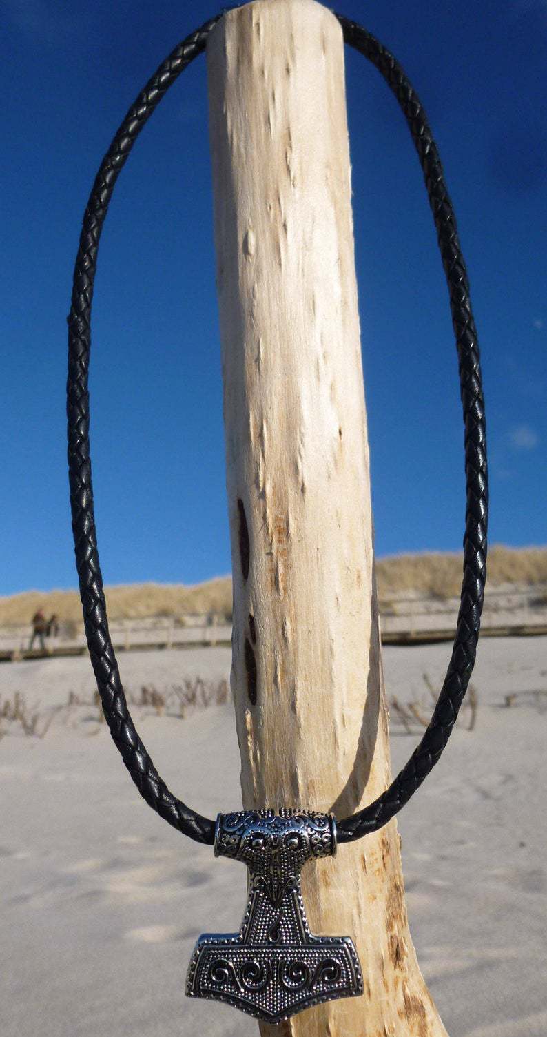 Schwarze Leder Surferkette Mit Edelstahlperlen