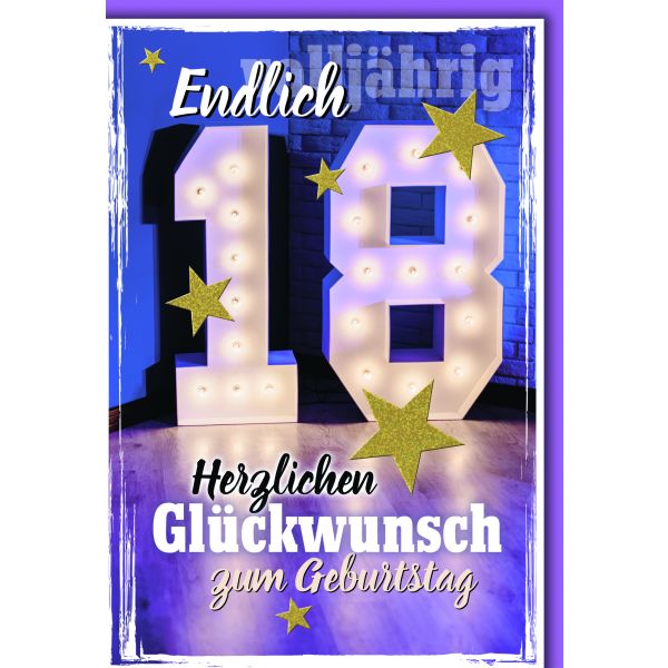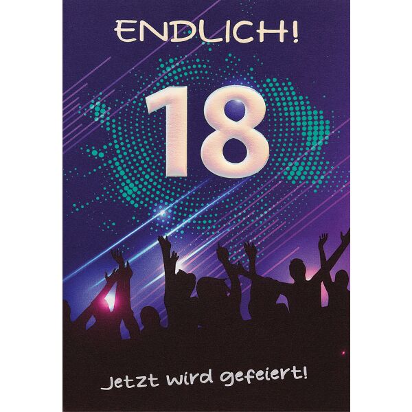 Susy Card 11286200 Glückwunschkarte Geburtstag, Zahl - 18, Volljährig