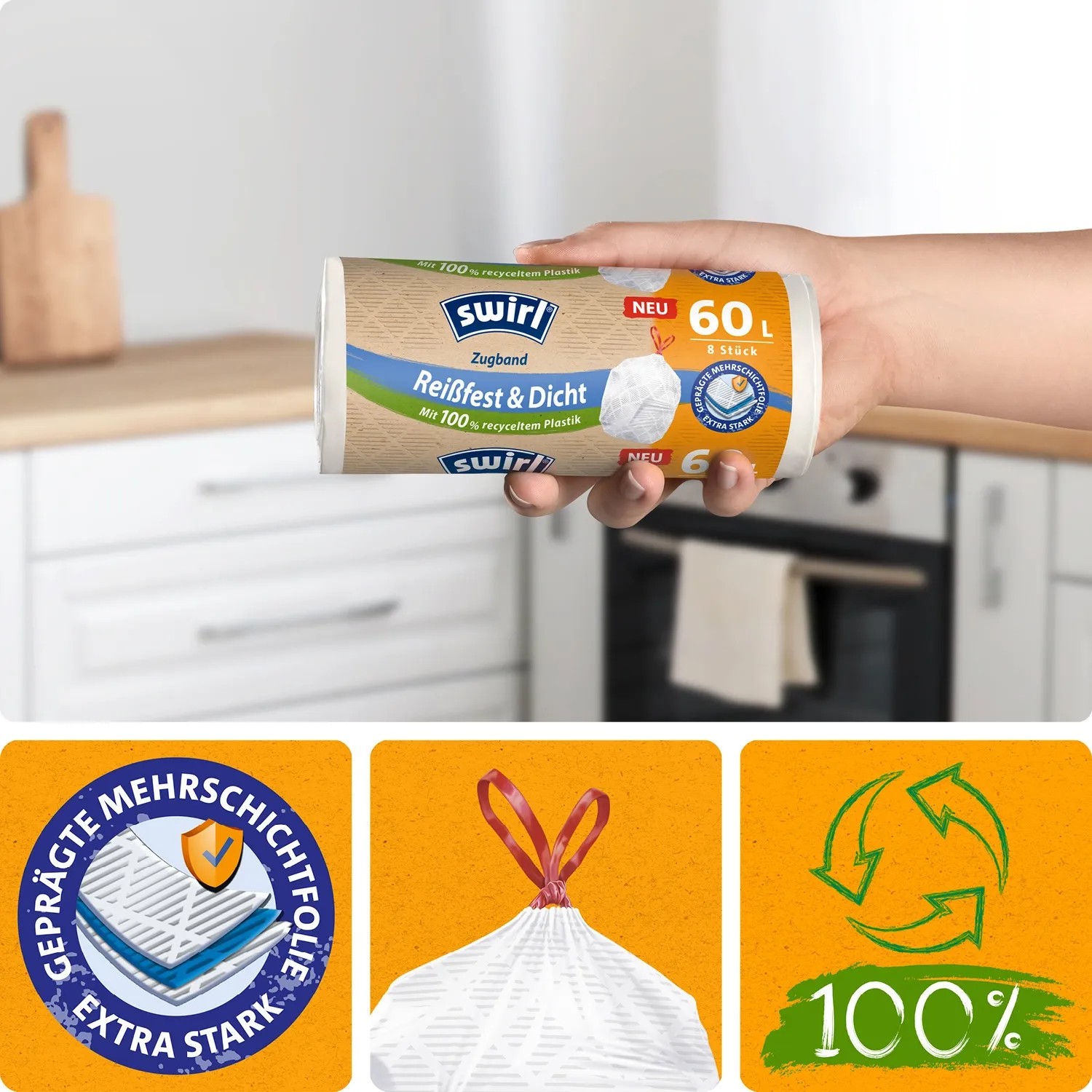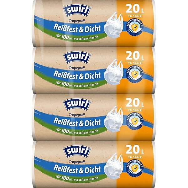 45 Beutel pro Rolle - 33x36 cm Beutelgröße Duft: Ocean Fresh (leichte Meeresbrise) - nicht so intensiv wie bei den anderen Duft-Müllbeuteln von Swirl Diese Müllbeutel bestehen zu 80% aus recyceltem Plastik, wovon mindestens die Hälfte Ressourcen nach Gebrauch sind. Die Beutel sind nicht kompostierbar. WARNHINWEIS Swirl Müllbeutel 35l Swirl Zugbandmüllbeutel 20L, 15 Beutel | AT Mülltüten 5l 45 Beutel pro Rolle - 33x36 cm Beutelgröße Duft: Ocean Fresh (leichte Meeresbrise) - nicht so intensiv wie bei den anderen Duft-Müllbeuteln von Swirl Swirl Reißfest & Dicht mit Tragegriff 20l (20 Stk.) ab 1,95 Die Beutel sind nicht kompostierbar. Ideal für den täglichen Gebrauch, lassen diese Müllbeutel Ihren Müllbereich sauber und frisch duften. Jeder Beutel ist mit einem angenehmen Vanille-Lavendel-Duft versehen, der unangenehme Gerüche effektiv neutralisiert und gleichzeitig Ihre Sinne verwöhnt. Diese Müllbeutel bestehen zu 80% aus recyceltem Plastik, wovon mindestens die Hälfte Ressourcen nach Gebrauch sind. Swirl® Müllbeutel Duft Ocean Fresh - Inhalt 5 L - Grösse 33 x 36 cm - Menge 45 SäckeSwirl® Müllbeutel bestehen zu 100% aus recyceltem Plastik, ausgenommen Farb- und Zusatzstoffe
