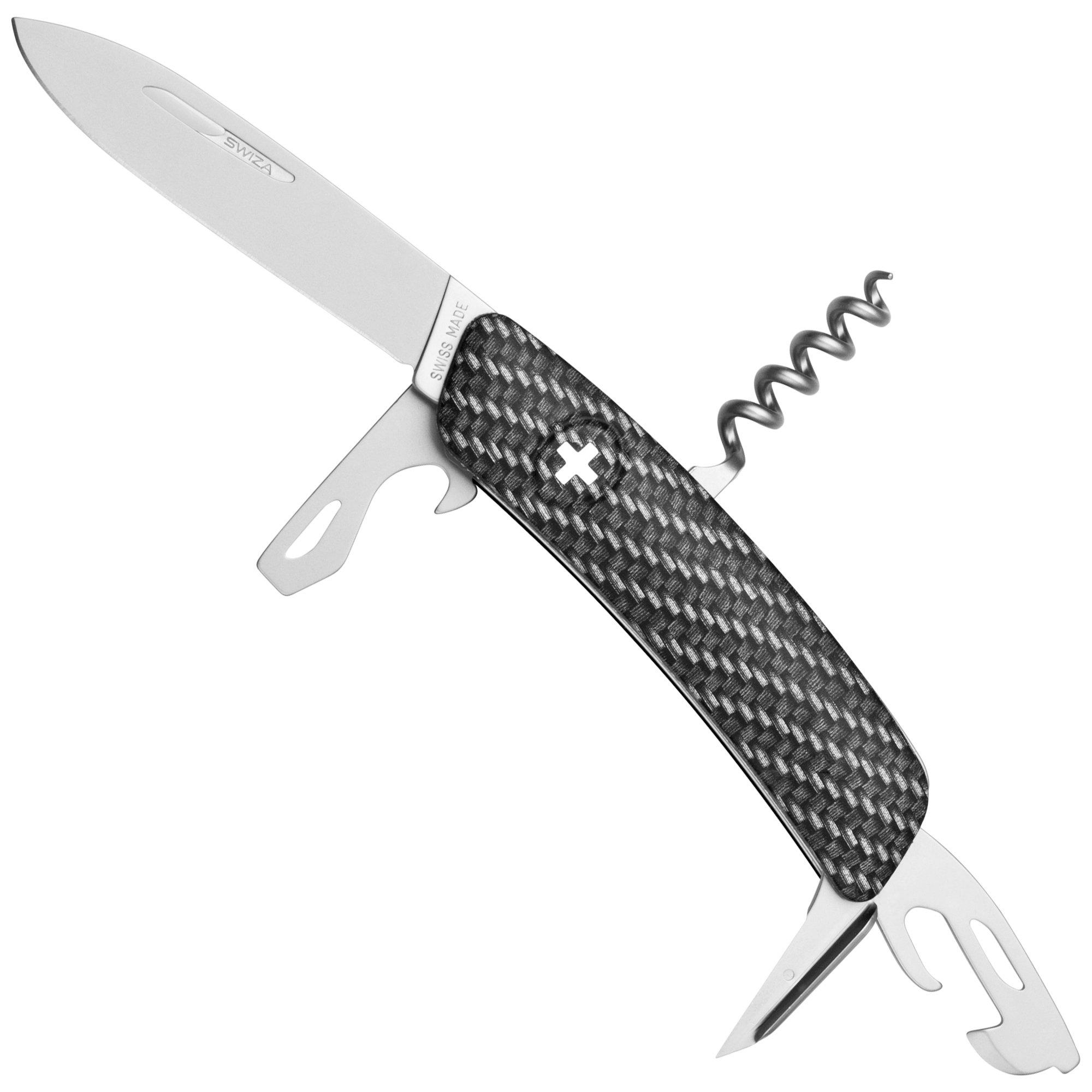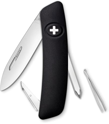 Lassen Sie sich von der durchdachten Kombination aus modernem Design und innovativer Funktionalität überzeugen. Praktische Lösungen zu erschwinglichen Preisen für die kleinen Abenteuer des Alltags stehen heute im Mittelpunkt der Unternehmensphilosophie. Die leichte Krümmung des Messers ermöglicht ein müheloses Aufklappen aller Werkzeuge, die olivfarbene Anti-Rutsch-Oberfläche erleichtert eine intuitive Handhabung. So erfindet Swiza im Jahr 2015 - genau 111 Jahre nach Gründung des Unternehmens - das legendäre Schweizer Taschenmesser neu. Die 75 mm lange Klinge aus PVD-beschichtetem Edelstahl 440 (gehärtet auf 57 HRC) arretiert und lässt sich durch Druck auf das Schweizer Kreuz- Markenzeichen von Swiza- wieder einklappen. SWIZA Schweizer Messer D03 AM, mattiertes Metall, Blaue Griffschalen, 11 Funktionen | : Messer, Taschenmesser, Kochmesser Das schwarze Messer ist mit einer hoch widerstandsfähigen, tiefschwarzen Hightech-Beschichtung aus Polytetrafluorethylen (PTFE) ausgestattet. 3, Drahtbieger, Dosenöffner, Schraubendreher Nr. SWIZA Unisex – Erwachsene Schweizer Messer D03 AB Olive, Schwarz, 17cm, SZA331050 Das D03 ALLBLACK besitzt außerdem eine Stech- und Bohrahle, die Kombi-Werkzeuge Flaschenöffner/Schlitzschraubenzieher Nummer 3 sowie Dosenöffner/Schlitzschraubendreher Nummer 1, eine Pinzette mit abgeschrägter Spitze und einen Sommelier-Korkenzieher mit 5 Windungen. 1, Sommelier-Korkenzieher, PinzetteTechnische DatenGrifflänge: 9,5 cmKlingenlänge: 7,5 cmGesamtlänge: 16,7 cmGewicht: 84 Gramm Swiza bringt mit dem D03 ein Schweizer Taschenmesser mit hoher Funktionalität trotz kompakter Maße auf den Markt. Die Anti-Rutsch-Beschichtung des Griffs sorgt in Kombination mit einer Sicherheitsarretierung der Klinge für eine äußerst sichere Handhabung des Messers Ilon Salbe Classic Swiza SH03 R AM, KSH.0036.1050, Olive, Schweizer Taschenmesser, 6 Clock Company