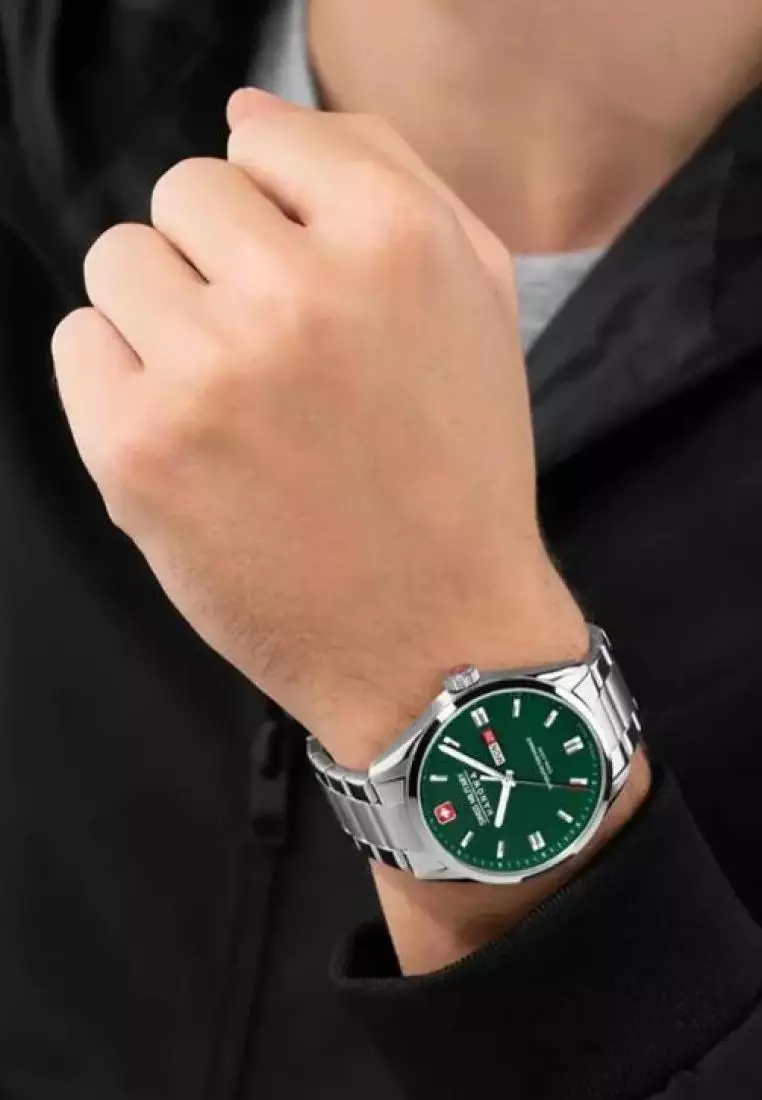 Beim Uhrenglas greift Swiss Military Hanowa zu Saphirglas, das weltweit zu den festesten Werkstoffen gehört. Es wird für seine Kratzbeständigkeit hochgeschätzt Wassergeschützt (10 Bar Prüfdruck nach DIN-Norm 8310) - Gewicht : ca., 145 Gramm Ziel des Unternehmens ist es, kontinuierlich an Innovation zu arbeiten um Ihre Produkte von höchster Qualität zum besten Preis anbieten zu können. Flaches Saphirglas mit Datumslupe - Gerändelte, verschraubte Krone - Datum auf 03:00 Uhr - Hochwertiges Swiss Made Soprod P024 Automatik Uhrwerk mit variabler Frequenz Swiss Military Hanowa hat sich auf die Herstellung von Uhren spezialisiert, die sowohl sportlich als auch extravagant sind. Swiss Made - Gehäusedurchmesser : ca. Besonders viel Wert legt das Unternehmen dabei auf Zuverlässigkeit, Qualität und Präzision. Edelstahl Glieder Armband in bicolor mit Sicherheits Faltschließe - Bandanstoß : 22 mm - Armumfang : ca., 21., 5 cm - 3 Jahre Hersteller Garantie Military Watch Swss Mltary Hanowa Automatkuhr Swss Mltary Hanowa SMWGL0006201 Herrenuhr Majestc Poneer Swiss Military Hanowa Swiss Military Hanowa - Maitre Plongeur Automatic SET - SMWGL0002002 11,5 mm - Edelstahlgehäusein bicolor, gebürstet und Flanken poliert - Edelstahlboden mit Sichtfenster