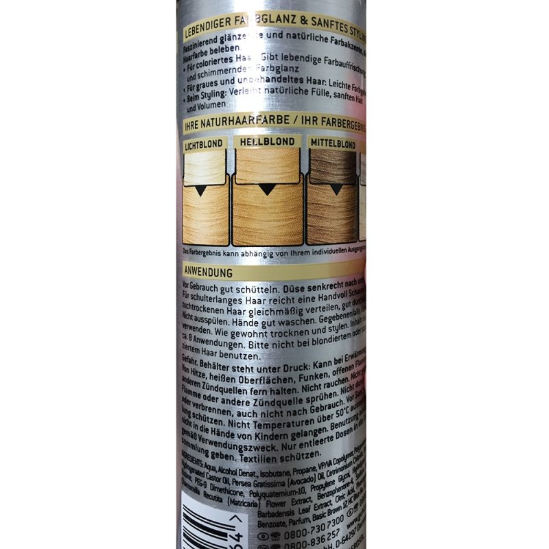Guhl Schaum-Tönungsfestiger 40 Mittelbraun von ROSSMANN für 4,99 € ansehen Der Guhl Schaum-Tönungsfestiger (75 ml) 82 Hell-Goldblond ist die ideale Lösung für alle, die ihrem lichtblonden bis hellblonden Haar eine frische Farbauffrischung verleihen möchten. Guhl Schaum-Tönungsfestiger - Farbe 40 - Mittelbraun - Für dunkelblondes bis mittelbraunes und graues Haar - Sanfter Halt, Volumen und Farbglanz - Hält 1 bis 3 Haarwäschen 255€ (25,50 €/l) + Guhl Schaum-Tönungsfestiger 82 Hell-Goldblond, 75 ml 784€ (104,53 €/l) Gesamtpreis Gebrauchsanweisung Haare mit dem Schaum einpinseln und nach Belieben stylen Guhl Schaumfestiger Silberblond 98 40726557 EAN - Guhl Schaum Tönungsfestiger 98 Silberblond, 75 Ml UPC Lookup Guhl Schaumtönungsfestiger