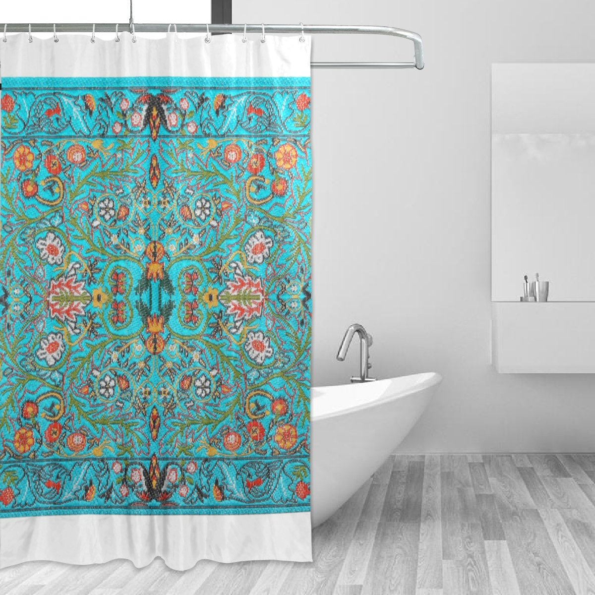 JSTEL Duschvorhang Mit Türkisfarbenem Blumenbaum, Schimmelresistent Und