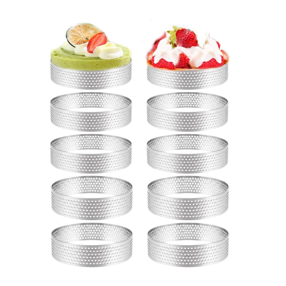 HARFINGTON 3 X Edelstahl-Törtchenringe, 11,9 Cm, Perforiert, Metall
