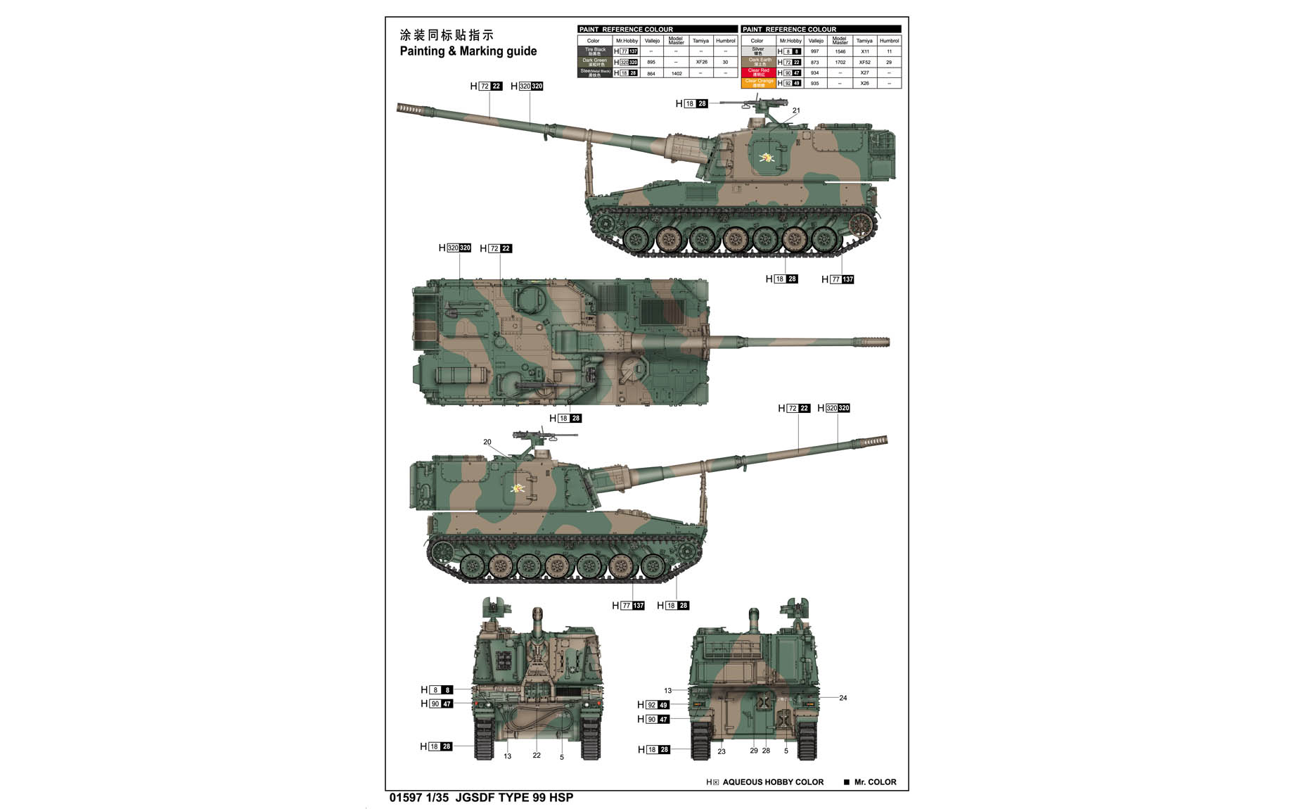 Modellbausatz JGSDF TRUCK 1:72 Fujimi (72326) Bei Modellbausatz von Trumpeter im Maßstab 1/35 Länge gebaut: 320,7 mm / Breite 94,7 mm Bausatz eines modernen, chinesischen Panzers mit über 860 Teilen inklusive einzelenen Kettengleidern und zahlreichen Photoätzteilen. TrumpeterJGSDF Type 99 SPH BausatzExakter Maßstab 1:35*Bausatz aus mehreren Teilen*Lieferung ohne Klebstoff und FarbenDieser Artikel kann nicht in unserem Ladengeschäft abgeholt werden
