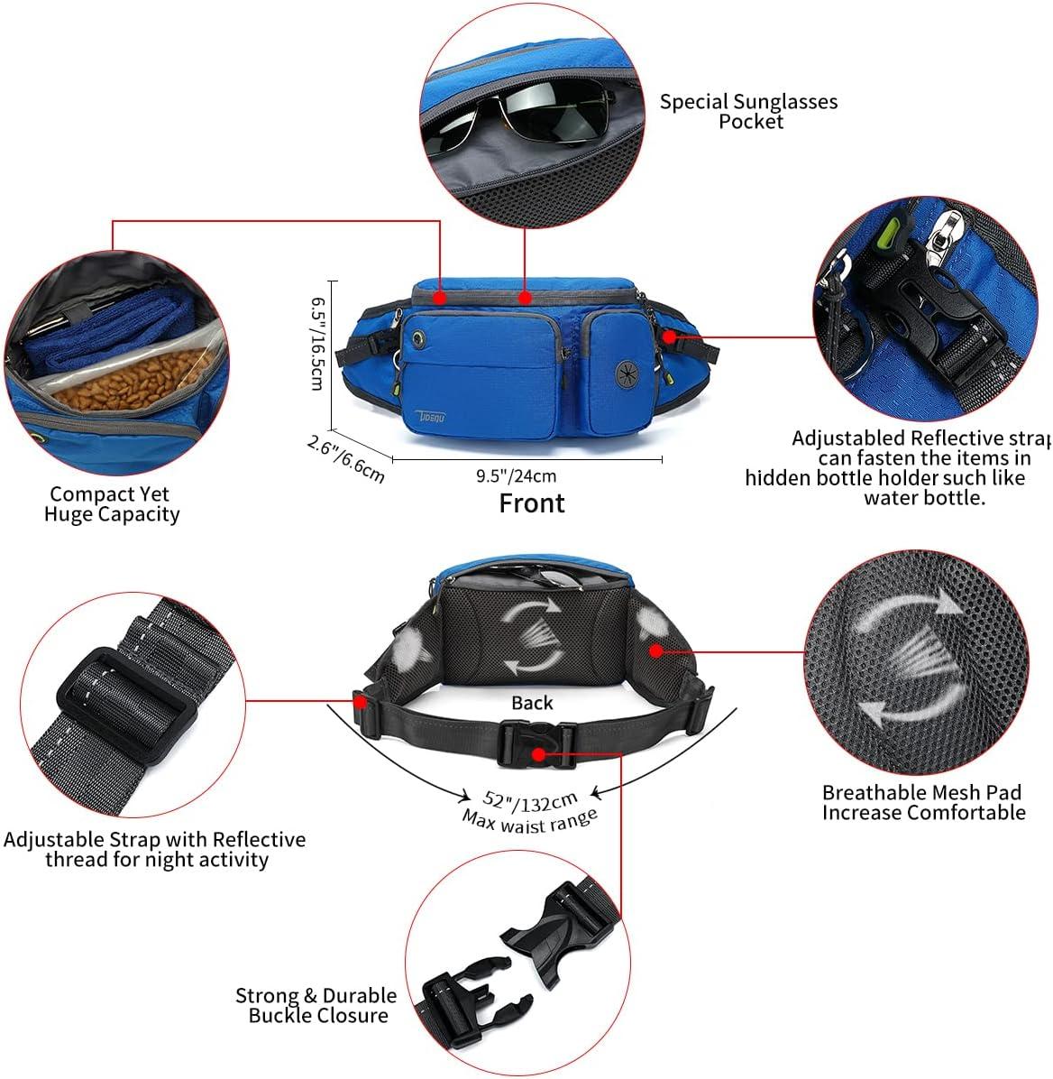 Two hidden pockets can put water bottles or umbrella. The adjustable car safety buckle can fasten two pets in the same time. ☞INTEGRATED & ZERO SHOCK ABSORBING BUNGEE LEASH-The hands free dog leash has the integrated bungee and the reinforced cross stitching, so it will be durable. The waist bag and hands free dog leash can be used together or separately. The advanced absorbing technique can protect your hand and waist and your dog’s neck away from injury., The 5., 8FT/178cm leash provides plenty of room and stretches out to 7., 3FT/222cm when fully extended. The front large pocket can fit most plus mobile phone up to 6., 5 inches. You can fasten your pet on any pillar. The back and the side all well padded which will increase comfort. Dog Seat Belt TUDEQU 4-in-1 Hands Free Dog Leash With Waist Bag,5.8FT Dog Running Leash,Adjustable Waist Belt For Walking Training Hiking Jogging Biking,Car Seat Belt Buckle,Reflective Stitches Dog Accessories The strap is adjustable and the the waist range is from 25., 2/64cm to 52/132cm. ☞2 HIDDEN WATER BOTTLE POCKETS- You can take yours and pet’s water bottle together. ☞WATER REPELLENT & BREATHABLE MESH PAD- The waist bag is made of water-resistant fabric which can keep your items away from raindrops, sweat and moist. The front small pocket can put doggy poop bags or tissue. Jogginge TUDEQU Hand Free Dog Leash With Waist Pack Leine Hund