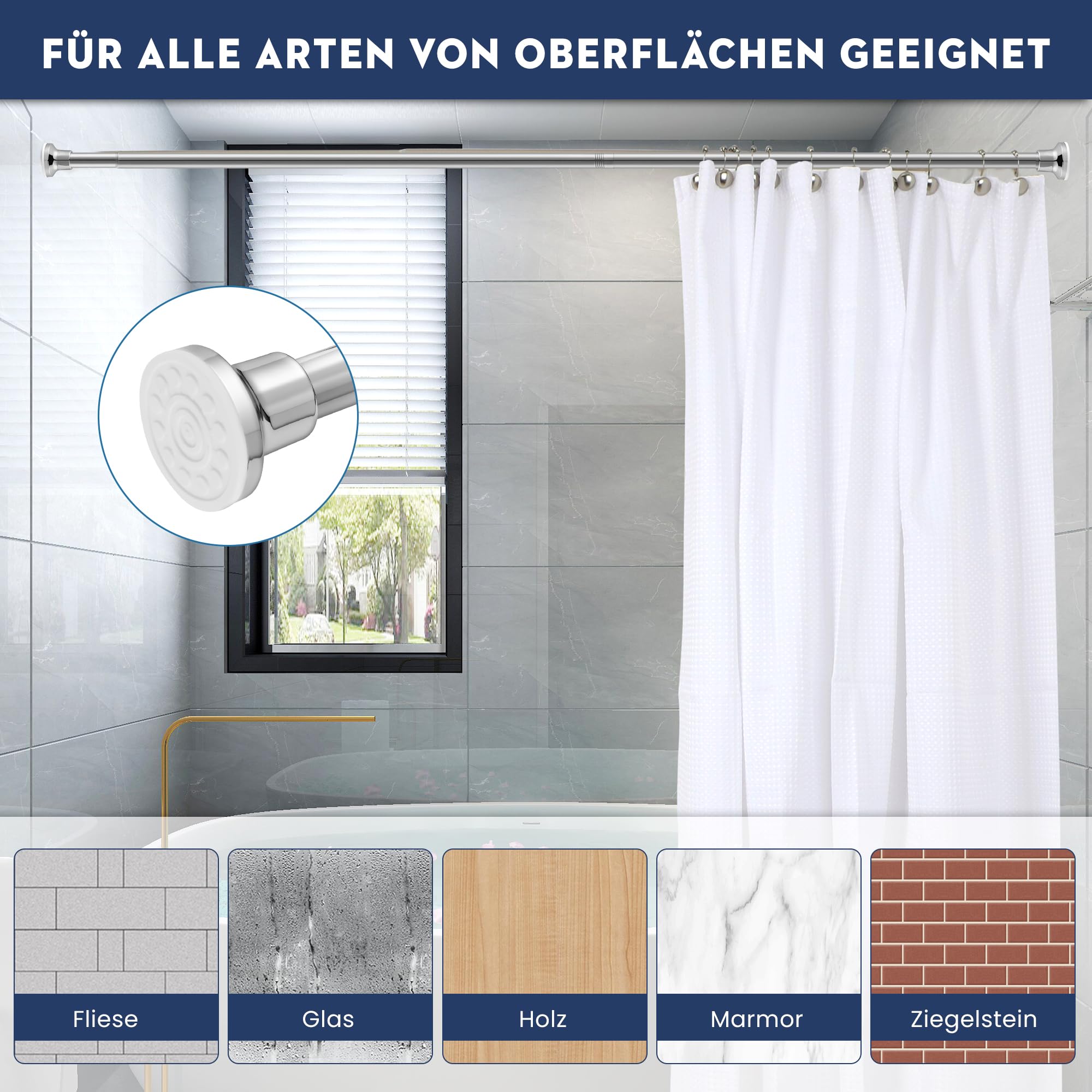 💦【After-Sales-Service】TVWOO Duschvorhangstange verfügt über ein professionelles After-Sales-Team, das mit den strukturellen Prinzipien der Spannvorhangstange vertraut ist, kann schnell und professionell Ihre Fragen zu den Duschvorhangstangen Federspannung zur Kundenzufriedenheit als erstes Ziel der Arbeit beantworten. Folgen Sie den Anweisungen Schritt für Schritt, silberne Duschvorhangstange kann ohne großen Aufwand montiert werden Leistungsstarke Duschvorhangstangen mit Federspannmechanismus, der bis zu 22,7 kg tragen kann, ohne zu sinken. 💦TVWOO Mehrzweck-Duschvorhangstange: Dekorative Gardinenstangen ohne Bohren, geeignet für alle Arten von Wänden (Glas, Fliesen, Holzwände, Marmorwände). Sie kann fest an der Wand befestigt werden, um sicherzustellen, dass sie rutschfest an der Wand haftet. Wählen Sie die richtige Größe der Duschvorhangstange entsprechend Ihrer Messung und der gewünschten Länge. VOSSOT Duschablage für Duschstange, Multifunktions Duschregal Ohne Duschstangen für Badezimmer passen zu einer Vielzahl von Duschvorhängen, sie können im Badezimmer, Balkon, Wohnzimmer, Esszimmer und Küchen, Tür- und Fensterkanten, Korridorgängen, Schrankstange, Außenspann-Duschvorhangstange für Terrassen verwendet werden. Die verstellbare Duschstange mit 2,5 cm Durchmesser hat eine Wandstärke von 0,9 mm. Scharnier für Glastüren UNION ohne Bohren - Paar / Nickel Satin Die Duschvorhangstange ist aus hochwertigem Metallmaterial, rutschfeste Bodenpolster, rastet sicher ein und die Wandstärke der Stange beträgt bis zu 0,8 mm. Die hochfeste Feder und das integrierte dicke Metallfeder-Innenschloss lösen und fallen aufgrund von thermischer Ausdehnung und Kontraktion ab. 💦 TVWOO Präzisions-Duschvorhangstange in Silber: TVWOO Designer haben sorgfältig einfache und vielseitige Modelle von Duschvorhangstangen gefertigt, glatte Linien, mit 2,5 cm verstellbaren Duschvorhangstangen Federspannung, verdickte, rostfreie Duschvorhangstange ist aus hochwertigem und langlebigem Metall, kombiniert mit modernen Trends, kann mit einer Vielzahl von Duschvorhängen kombiniert werden, fügen Sie ein Gefühl von Freizeit und Entspannung zu Ihrem Badezimmerdekor hinzu, verbessern Sie die Eleganz und den Geschmack des Wohnzimmers. Die Stange ist glatt und wasserdicht, leicht zu verwenden. um Bedürfnisse in einem Vielzahl von Szenarien 💦 TVWOO Duschvorhangstangen von 68 bis 180 cm: silberne Duschvorhangstange inklusive 1 x 40,6 x 2,5 cm feste Stange, A, 7,6 x 40,6 x 2,2 cm feste Stange -B, 1 x 40,6 x 2,2 cm verstellbare Stange -C, 4 x Verbindungsstück, Duschstangen silber Für das Badezimmer kann die Spannstange frei von 68,6 cm bis 180,3 cm verlängert werden. Jede Duschvorhangstange ist mit einem raffinierten Einbrennlack für ein glänzendes Finish versehen. TVWOO Duschvorhangstangen sind für alle Arten von Szenarien geeignet, egal ob Sie ein Fan von minimalistischem Stil sind oder eine Person, die Eleganz sucht, diese Duschvorhangstange wird zu einem malerischen Teil Ihres Heimlebens werden. Diese verstellbare Zugstange funktioniert effektiv als Duschvorhangstange, Schrankstange oder Gardinenstange und ist somit eine ideale Wahl für jedes Badezimmer oder Wohnraum Duschvorhangen Für Badezimmer TVWOO Duschvorhangstange Mit Silberfarbener Spannung: Verstellbare Duschstangen Für Badezimmer, Küche, Tür, Ohne Bohren, Gebürstetes Nickel, Strapazierfähig, Klein, Teleskop-Feder, Duschspannstange Duschvorhangen Ohne Bohren Kann leicht Gewicht tragen, kann Hält 18 kg stand, ohne zu sinken, und hat eine starke Haltbarkeit und hohe Qualität. Verhindert Schäden an der Wand und ist einfach neu zu positionieren oder zu entfernen, recycelbar.