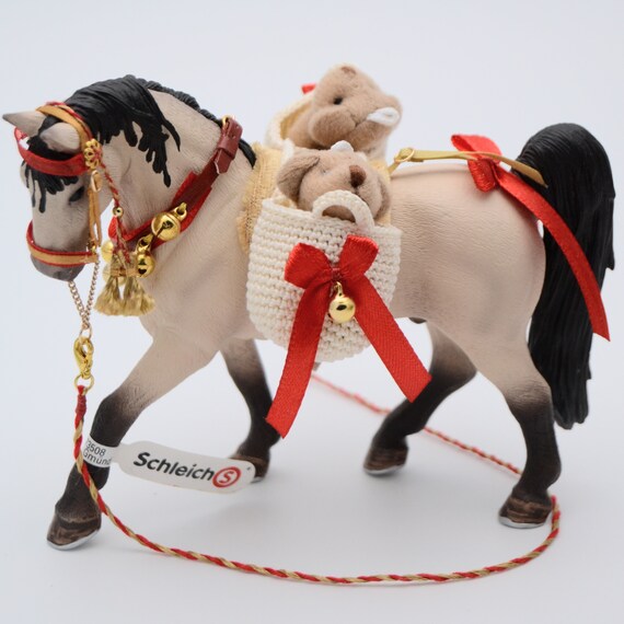 Handgemachte Weihnachts-Tacks Für Schleich/CollectA/Papo Modell Pferde Pferde Caballo Cavallo, Mit Plüschteddybär (Ohne Pferde