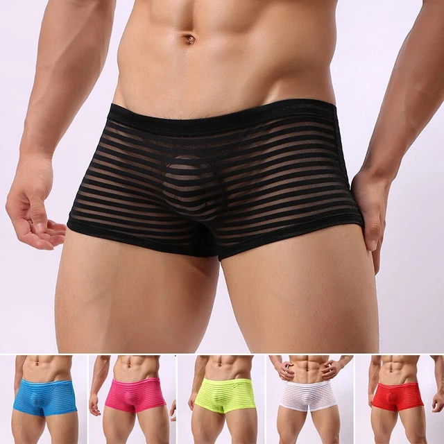 Faringoto Herren Unterwäsche Mesh Niedrige Taille Boxer Herren Slips Atmungsaktiv Butt Lift Bikini, 2black+2white, S