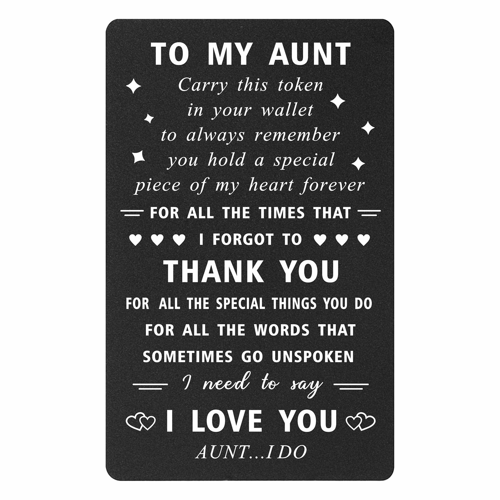 „I love my Auntie, to my aunt, carry this token in your wallet to always remember you hold a special piece of my heart forever. Passt in die Brieftasche, Kreditkartengröße: ca. for all the times that I forgot to thank you for all the special things you do. 8,6 x 5,4 x 0,1 cm, passt perfekt in jede Brieftasche, wird mit einem blauen Umschlag geliefert Bedeutungsvolle, einzigartige Grußkarte für Ihre große Tante zu jedem Anlass, wie Geburtstag, Weihnachten, Valentinstag, Erntedankfest, Hochzeit, Muttertag, Neujahr, Urlaub, Ruhestand oder einfach nur so. I need to say I love you, Aunt., ., ., I DO Schwarze Oberfläche und weiße Schrift machen es deutlich sichtbar und leicht zu lesen (nur eine Seite graviert). Geschenk Tante Weihnachts Von Nichte Und Neffe - Coole , Neue Tante Geschenke Für Tante Lateinische Tante Und Neffe Öffnen Geschenke Auf Der... I need to say I love you, Oncle., ., ., I DO Kreditkartengröße 8,5 x 5,3 x 0,3 cm, Gewicht fast 16 g, passt in jede Standard-Brieftasche oder Tasche. ENGZHI Neffen Geschenke von Auntie Uncle, I Love My Nephew, Neffe Karte für Weihnachten, Valentinstag, Abschlussfeier, Metall-Gravur günstig auf - Große Auswahl von Top-Marken Karte für Tanten, dieses beste Geschenk für Geburtstag, Weihnachten, Valentinstag, Erntedankfest, Muttertag, Neujahr, Urlaub oder einfach so, bringen Sie Ihre Tante jeden Tag zum Lachen Daen Lustiges Tante Nichte Neffe - Aus de Weg ich werde Tante T-Shirt