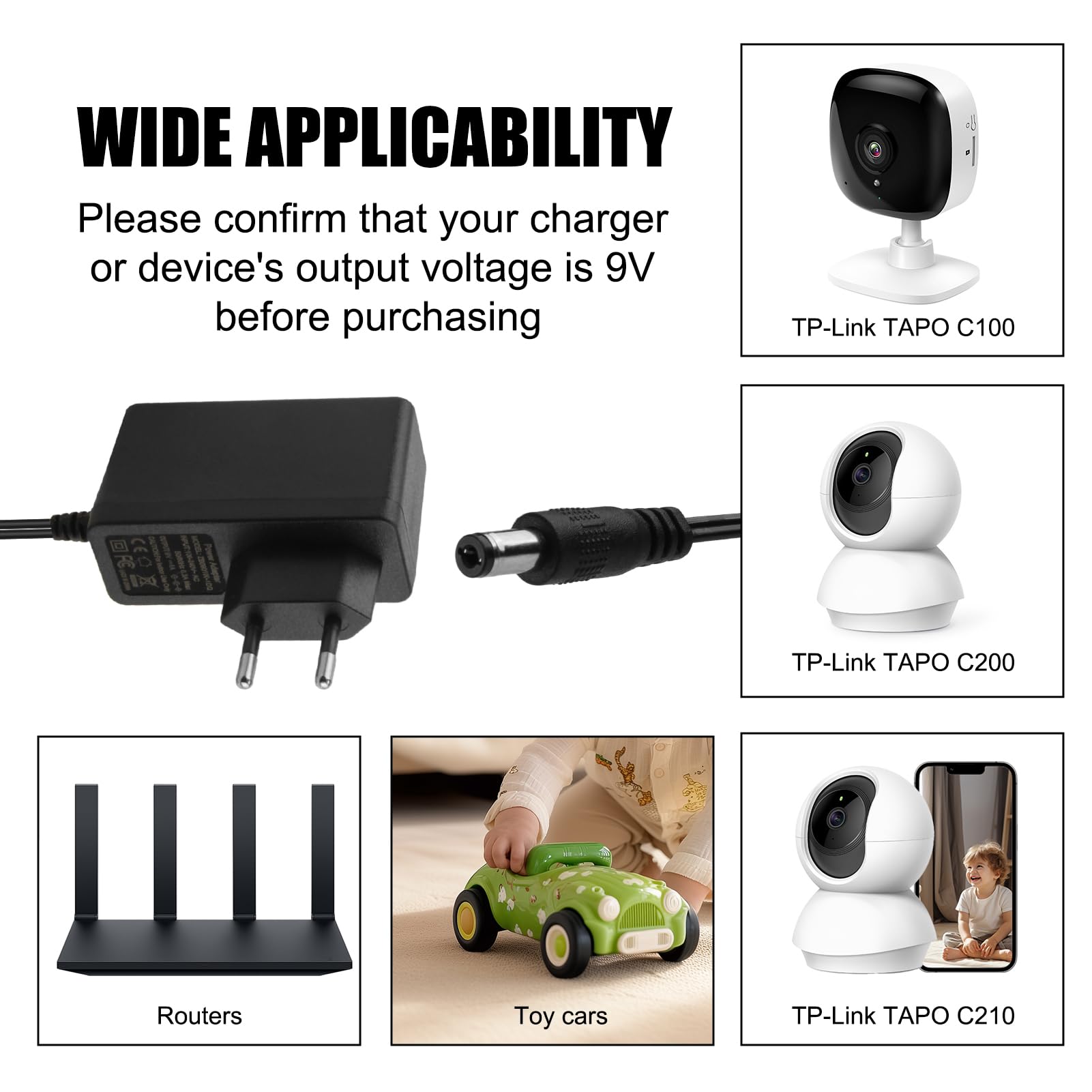 Ladegerät 9V 1A Für Tapo C100, C200, C210, C310, C320WS, TC60, TC70