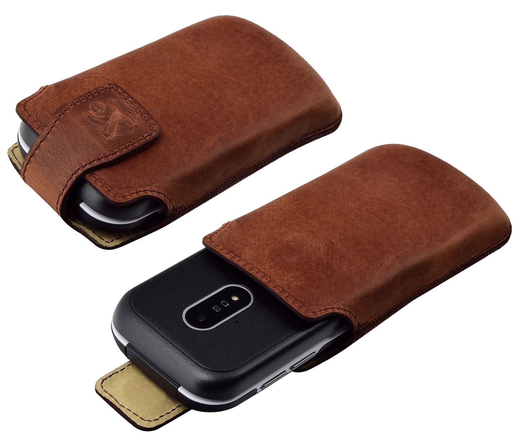 Suncase Book-Style Hülle Kompatibel Mit Gigaset GS4 Leder Tasche Lederhülle Handytasche Schutzhülle Case Mit 3 Kartenfächer In Burned-Cognac