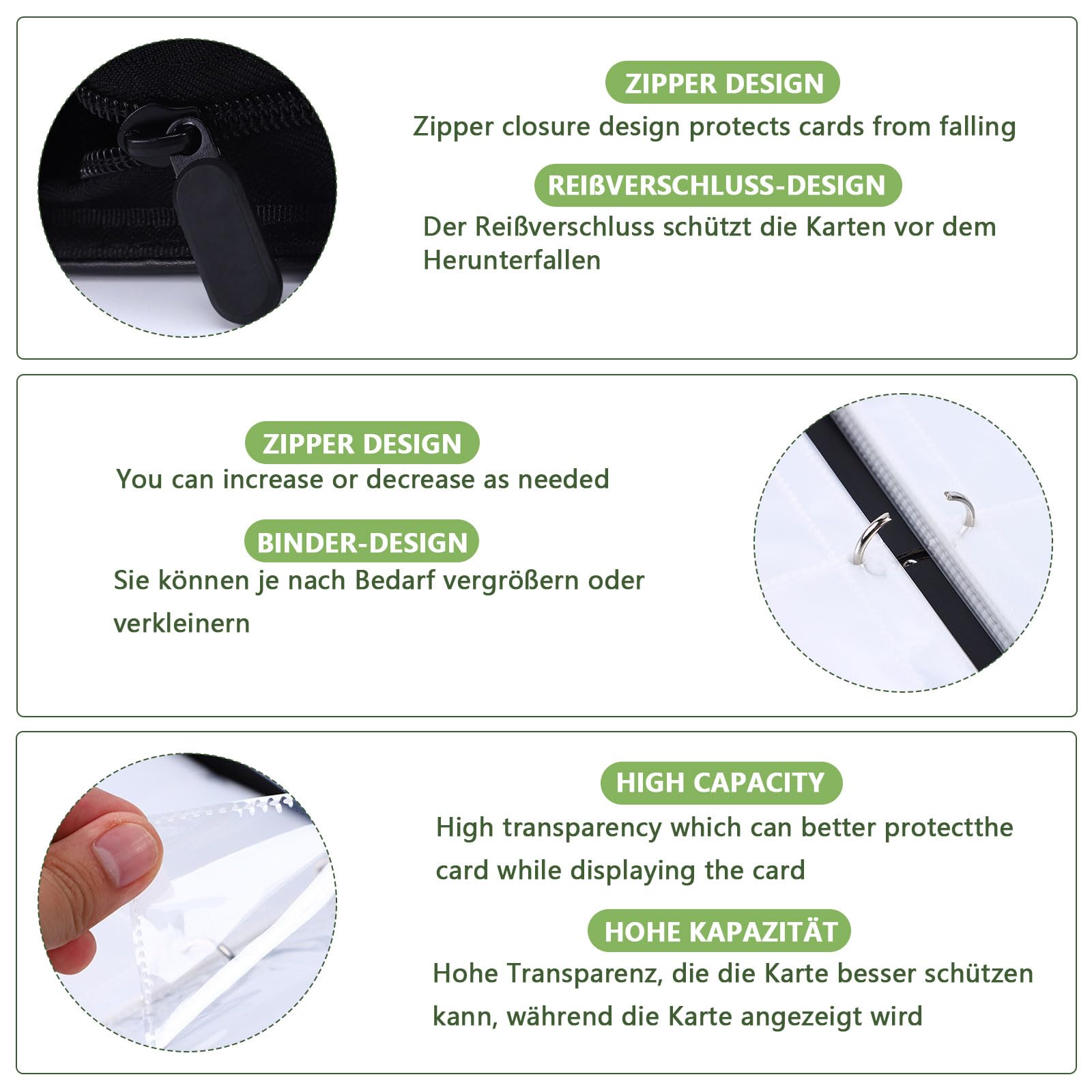 【Hochwertiges Material】Der Fußballkartenbinder besteht aus hochwertigem PU-Kunstleder und PP-Material, das stark und langlebig ist und die Karten vor Beschädigungen, Biegen, Falten oder Verblassen schützt. Lieferumfang: 1 x Fußball-Kartenhalter. Sammelalbum für Karten,50 Seiten 400 Karten Sammelkarten Album,Sammelmappe Karten Ordner Heft, Kompatibel mit Den Meisten Trading Sportkarten, Spielkarten Der Sammelordner für Sammelkarten ist mit Reißverschluss ausgestattet, der müheloses Öffnen und Schließen ermöglicht und so ausgezeichneten der Karten gewährleistet Fußball Sammelalbum Sammelkartenbinder 4 Taschen, 400 Taschen, Doppelseitige Karten Aufbewahrungstasche Fußball Thema Albumschutz Set Sammelalbum Fußball Karten Material: PU-Kunstleder, PP-Material Größe: 24,5 × 18 × 5 cm., Produktmerkmale: 1., 【Fußball-Themen-Design】Modisches und einzigartiges Fußballmodell-Aussehen, perfekte Kombination aus Sport und Sammlung, zieht Fußballfans und Kartenliebhaber an., 2., 【Transparente Einsätze】Jede Seite ist mit Transparenz gestaltet, leicht zu zeigen und Karten schnell zu finden, wodurch Schäden und Reibung vermieden werden., 3., 【Multifunktionalität】Geeignet für eine Vielzahl von Kartentypen, wie Sportkarten, Visitenkarten, Spielkarten usw. 【Hohe Kapazität】 Der Fußballkartenhalter bietet mehrere Kartenfächer, die bis zu 400 Karten aufnehmen können, und helfen Benutzern, verschiedene Arten von Karten in einer geordneten Weise zu organisieren und aufzubewahren, wie Sportkarten, Souvenirkarten usw. Produktdetails: Design: Fußball-Thema. geeignet, um eine Vielzahl von Kartenspeicheranforderungen zu erfüllen. Kartenfächer:8 Karten pro Seite, insgesamt 400 Karten. Basteln it Bastelpapier – Die 15 besten Produkte i Vergleich... com Modebekleidung für Frauen auf der ganzen Welt entworfen und produziert.