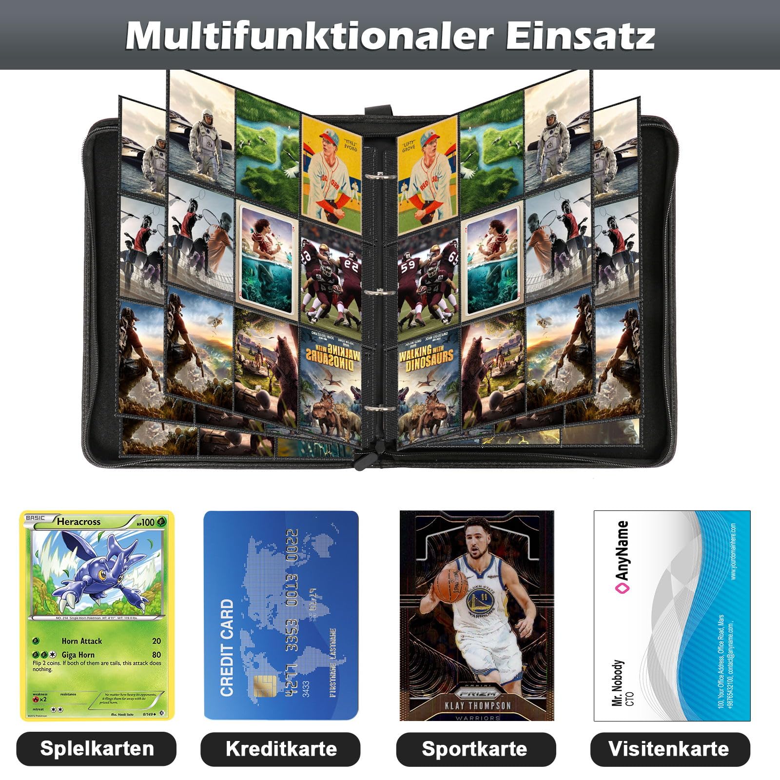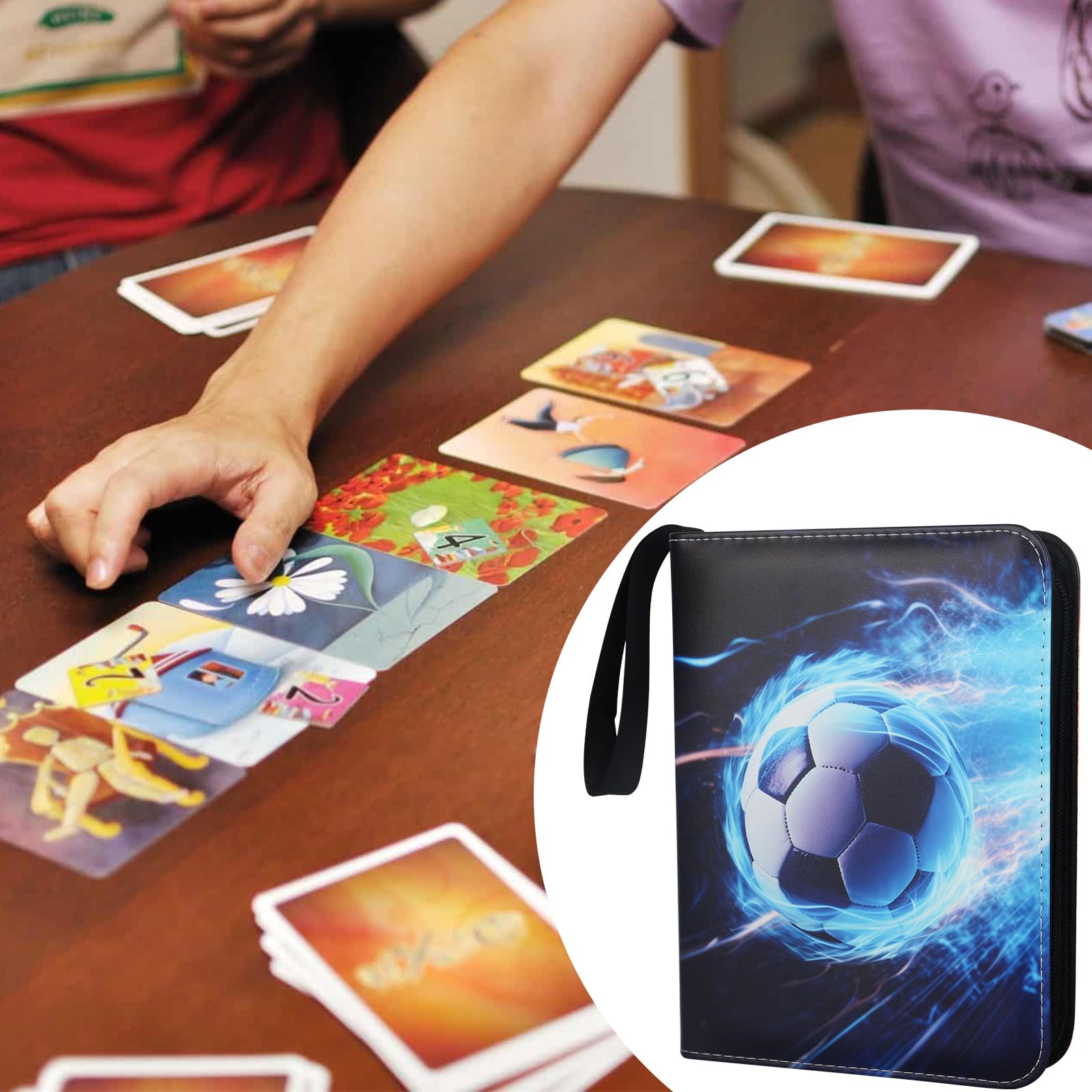 Sammelkartenbinder 4 Taschen, 400 Taschen, Doppelseitige Karten Aufbewahrungstasche Fußball Thema Albumschutz Set