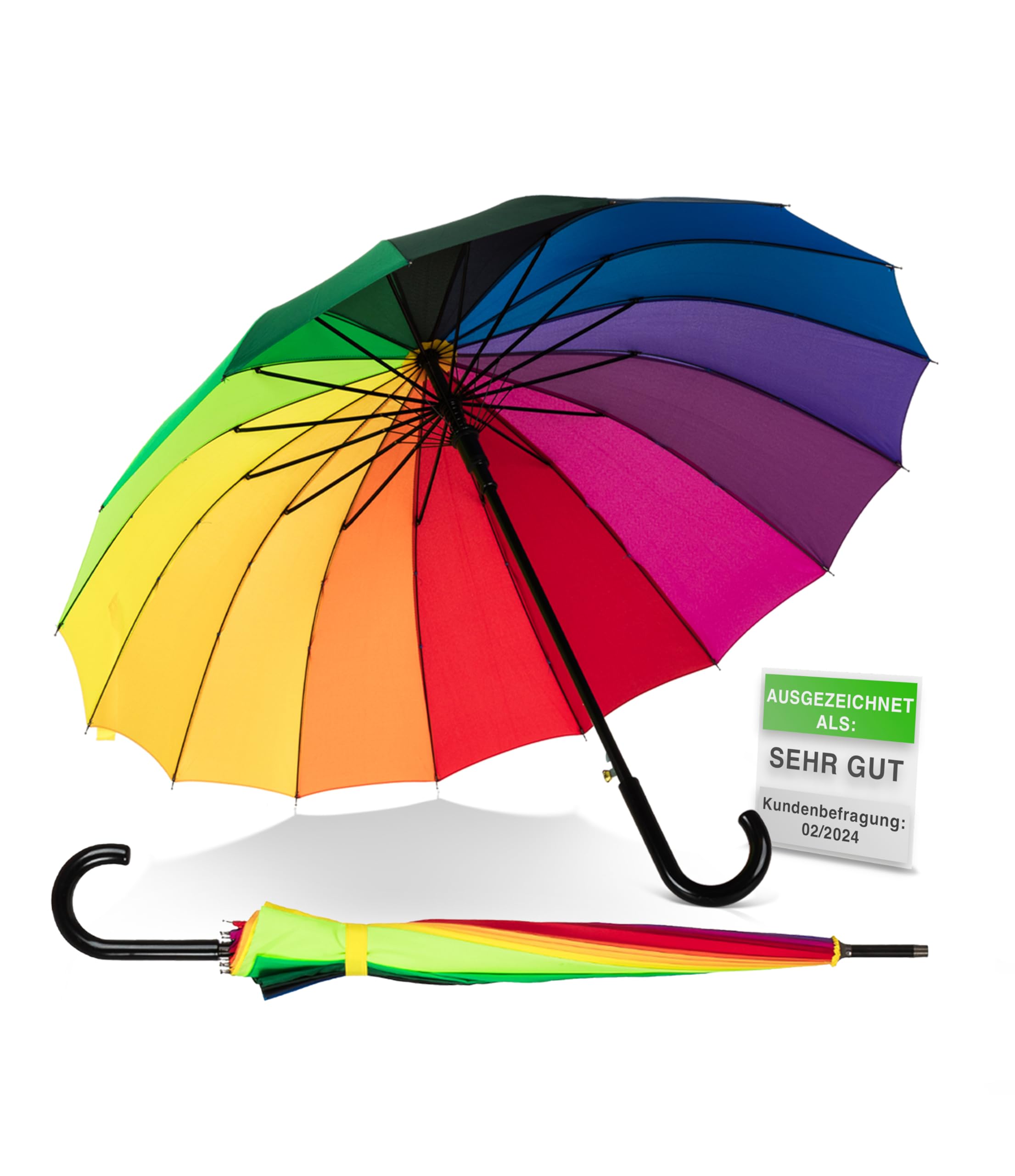 Geschlossen misst der Regenschirm 96 cm. Regenschirm für Damen der Marke Impliva, Typ Stockschirm mit Handöffner. 95KPH 16 Rippen Regenschirm Automatik Sturmfest Regenbogen - Stockschirm SEHR STARK Herren Damen Windfest - Windproof Verstärkt mit Fiberglas - Mehrfarbig Bunt - Hakengriff - Größe M HB127 Herren Langschirm, Holzstock mit angesetztem Griff, 8 teilig. Zum Stoffmuster bitte ins Bild klicken Regenschirm Xxl IX-brella Taschenregenschirm Regenbogen-Schirm 10-teilig Extra Regenschirm Stockschirm Die Farbe des Schirmdaches ist Regenbogen, das verwendete Material besteht aus 100% Polyester. Groß und stabil wiegt der Schirm nur ca., 529 Gramm. Dieser bunte Stockschirm besitzt durch seine 16 Streben ein schönes, rundes, farbenfrohes Dach, das selbst im größten Schmuddelwetter für gute Laune sorgt. Ein besonderes Highlight ist der ebenfalls aus Holz bestehende Rundhakengriff mit Falcone-Logo-Branding. Dabei ist der Schirm groß genug, um selbst zwei Personen sicher vor Regen zu schützen. Entdecke Hochwertiger XXL Regenschirm 16 Speichen , Automatik regenbogen 110 cm 133068 in großer Auswahl ✓ Vergleichen Angebote und Preise ✓ Online kaufen bei ✓ Kostenlose Lieferung für viele Artikel Geöffnet ist das Schirmdach 110 cm groß.