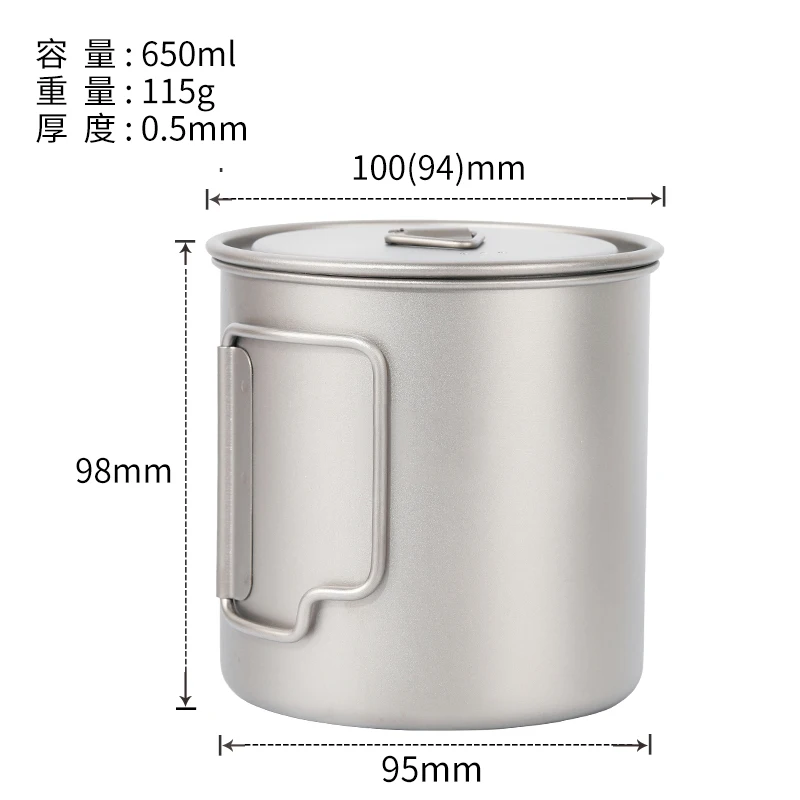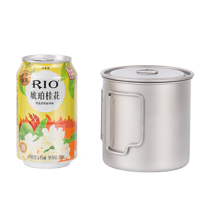 FANYCS Camping-Tasse Aus Titan Mit Faltbarem Griff, Reise-Hängetopf Mit Deckel, 750 Ml