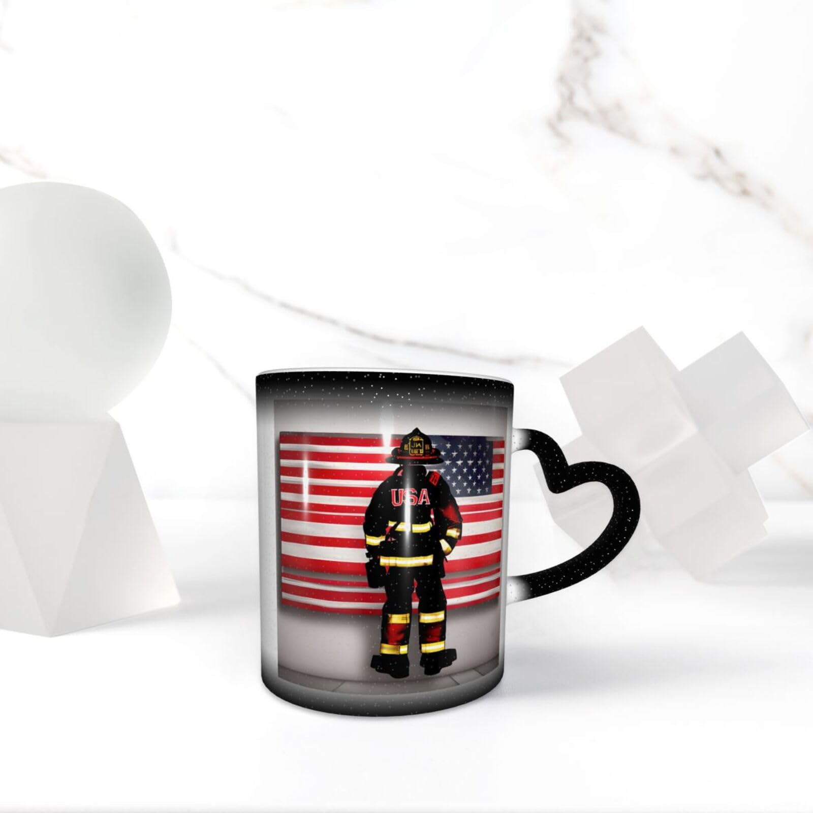Tasse Mit Roten Streifen, Feuerwehrmann, USA-Flagge, Farbwechsel, Hitzeempfindlich, Einzigartige Kaffeetasse, Geburtstagsgeschenk