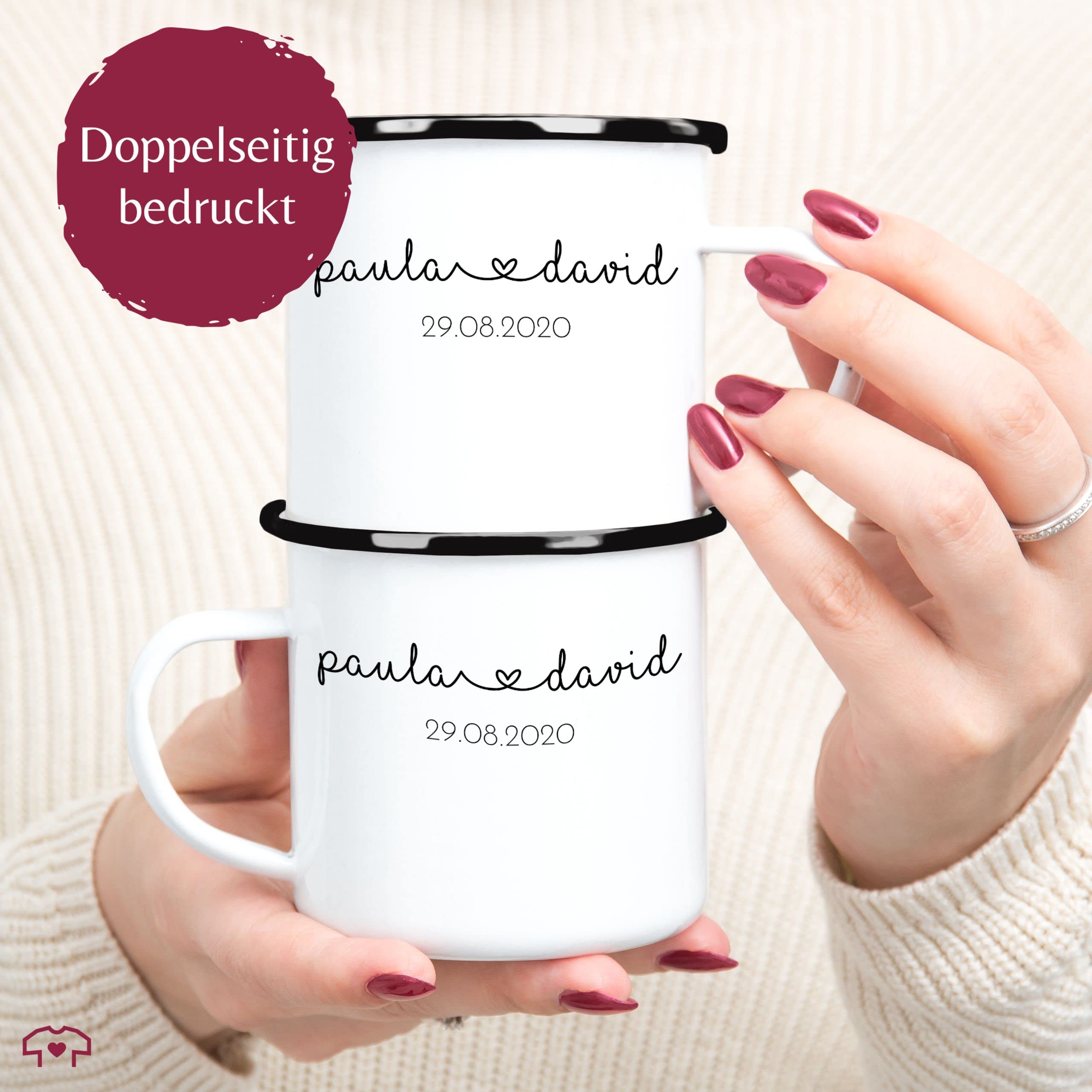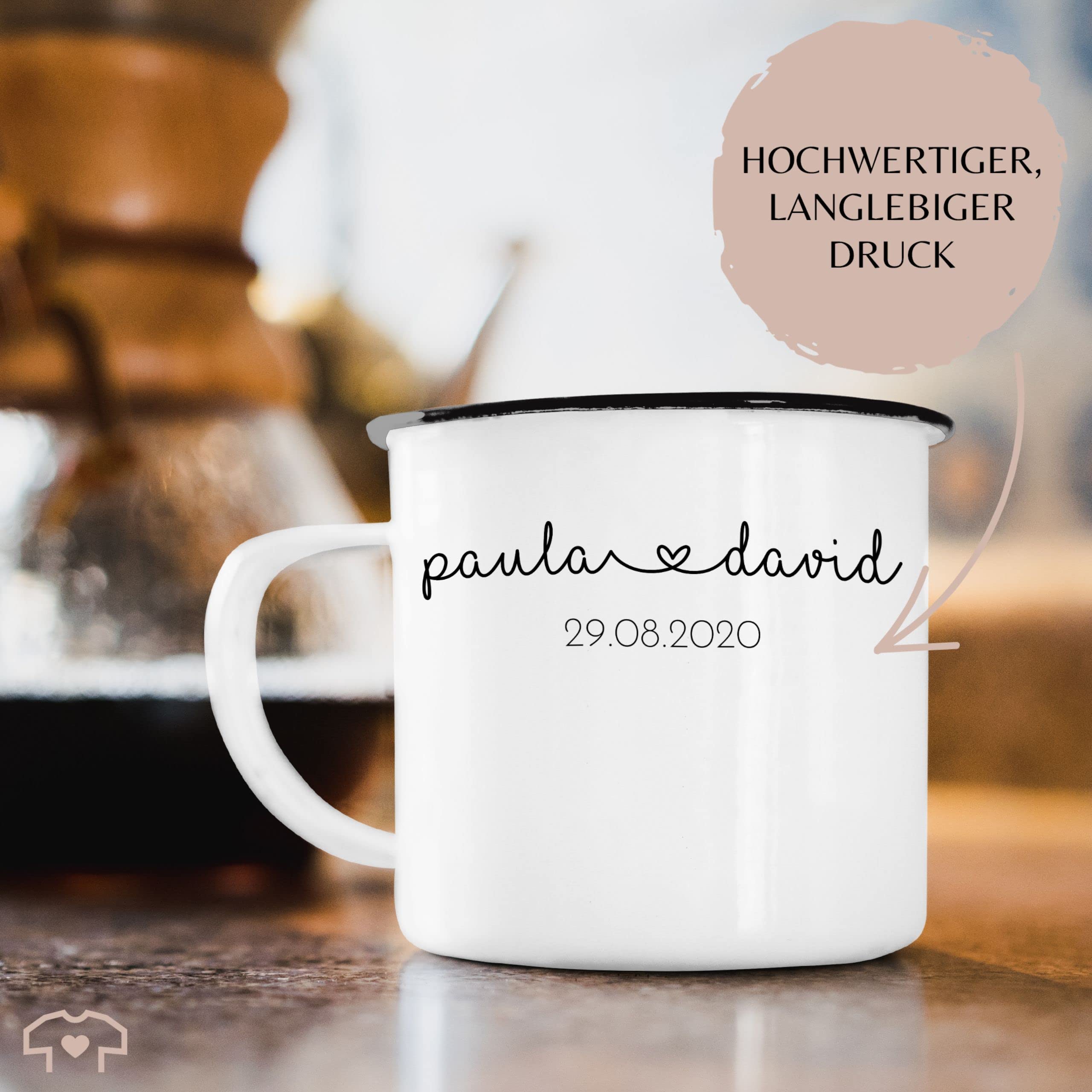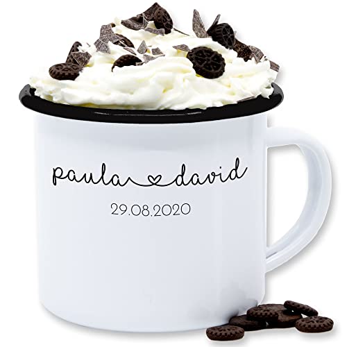 SpecialMe® Emaille-Tasse Personalisiert Geschenk Hochzeit Hochzeitstag Namen Und Datum Herz Hochzeitsgeschenk Emaille-weiß-schwarz Standard