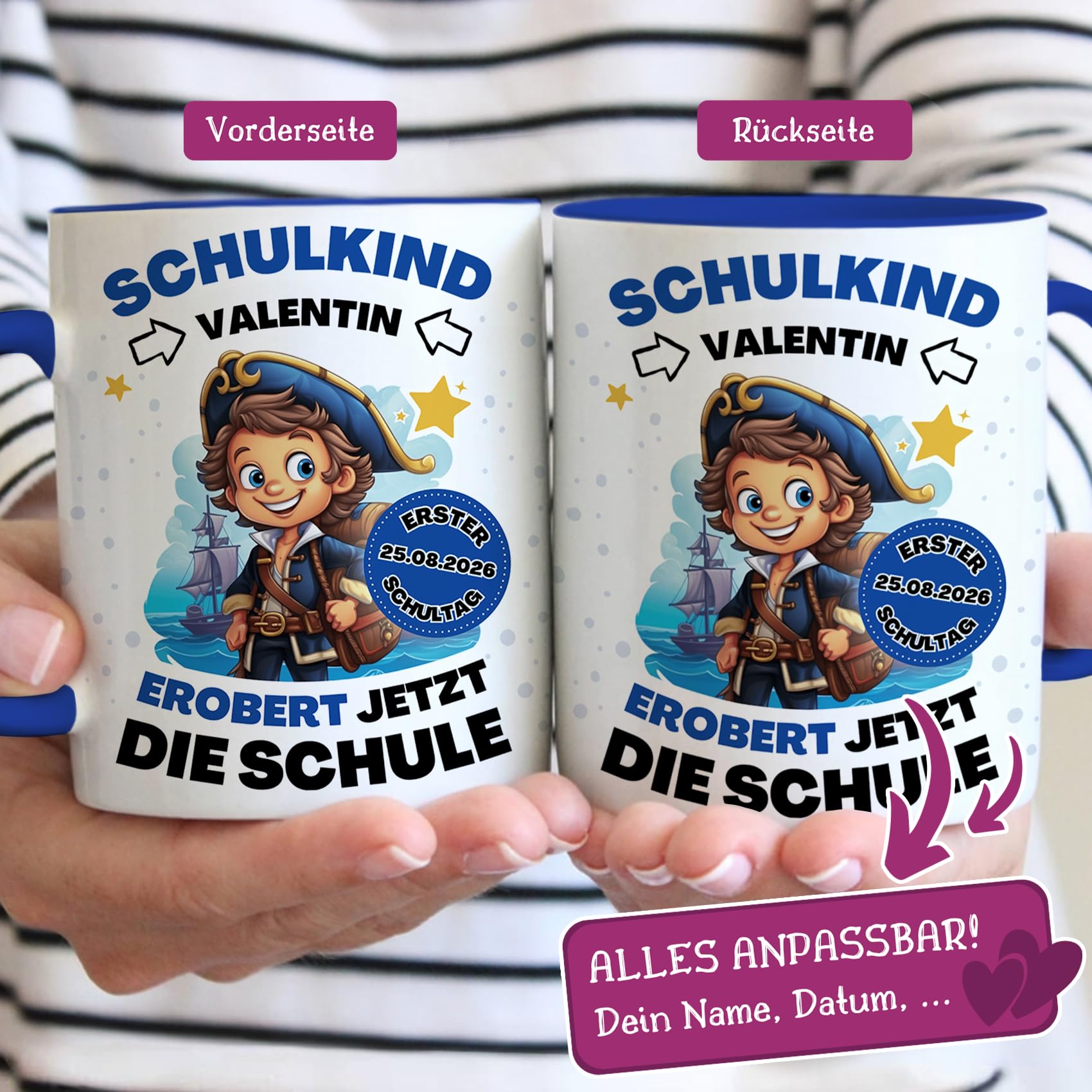 Tassenliebling® Schulkind Tasse Personalisiert Junge Mädchen - Blau - Geschenk Zur Einschulung - Dino Tasse - Schultüte Füllung - Schulanfang Geschenke - Grundschule Vorschule