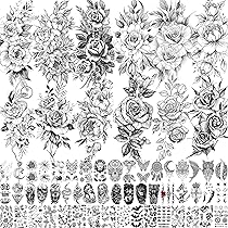 LEADTEAM 12 Blätter Temporäre Tattoos, Fake Tattoo 3D Rose Tattoo Blume Tattoo Klebe Tattoo Zum Aufkleben, Klebetattoo Erwachsene Tatoos Aufkleben Damen Fake Tattoo Frauen Tattoo Festival