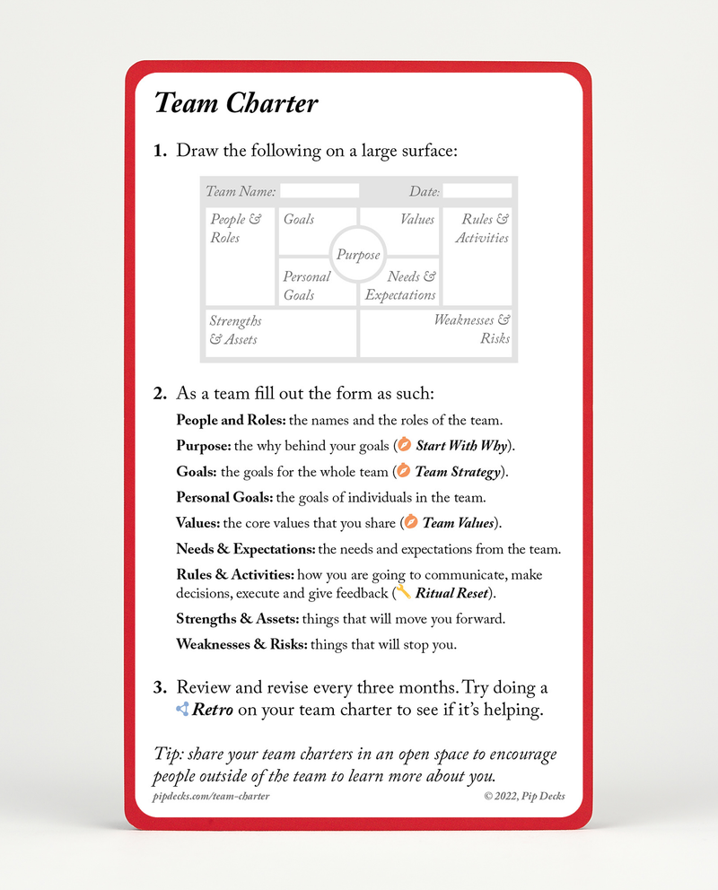 Storyteller Tactics PDF Team Tactics® By Pip Decks® – Official 54-Card Deck For Tactics Card Deck Vertrauen in eine Box: Pip Decks vertrauen die Leute bei Google, Microsoft, Pip Decks und anderen als unschätzbaren Trick, aber wenn Sie feststellen, dass Sie nicht von Ihrem Deck inspiriert sind, ist es einfach, eine Rückerstattung zu erhalten Unser Team-Taktik-Deck ist ein vielseitiges Business-Tool, das entwickelt wurde, um Ihre Führungs- und Managementfähigkeiten zu verbessern, damit Sie Ihre Workshops auf neue Höhen bringen und das Geheimnis eines großartigen Chefs wirklich lüften können. Mit Ihren Pip Decks Team-Taktiken für Manager-Karten lernen Sie Führungsstrategien und Taktiken, um Ihr Team so zu motivieren, dass es haftet, und Mitarbeiter dazu inspirieren, der ideale Teamplayer zu sein, der Ihre Geschäftsziele erreichen möchte. Team Tactics by Pip Decks - Official 54-Card Deck for Leadership, Team Alignment & Effective Sessions ; €129.00 ; Quantity Gebrauchsfertige Vorlagen: Organisations- und Führungstaktiken mit leicht verständlichen Anweisungen, Methoden und Frameworks, die Ihnen helfen, Ihr Team durch motivierende Führung und leistungsstarkes Management zu stärken Sie brauchen keine Türme von Führungsbüchern, Geschäftsbüchern, Motivationsbüchern oder Geschäfts- und Unternehmertumsbüchern mehr, dank des praktischen Kartendecks, das Ihnen zeigt, wie Sie eine Werkstatt strukturieren, damit Sie wissen, wie Sie mit jedem mit Zuversicht sprechen können. Egal, ob Sie Berater, Manager, Werkstatt-Facilliatator oder Geschäftsführer sind, diese Teambuilding-Karten sind ein unverzichtbares Werkzeug, das Ihnen hilft, großartige Mitarbeiter zu wachsen, um sicherzustellen, dass Ihre Organisation auf guten Teams basiert, zusammenarbeiten und nach Erfolg streben.,