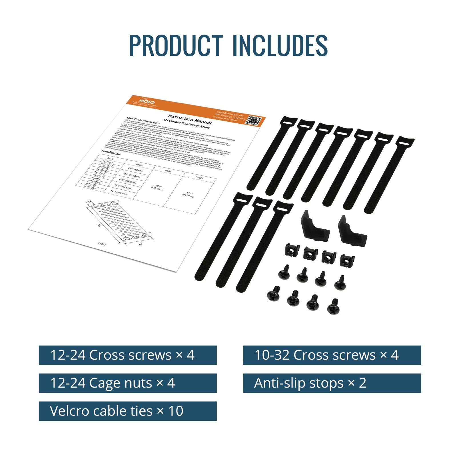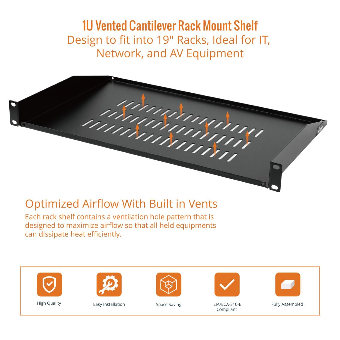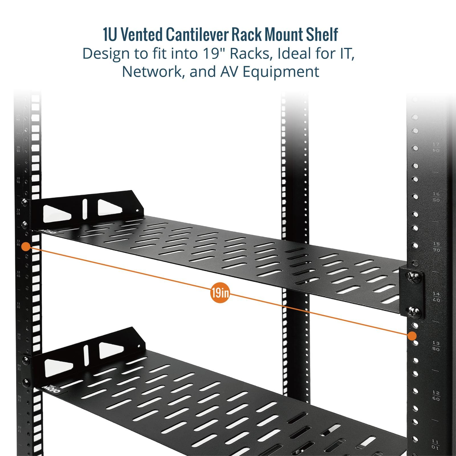 Tecmojo 1U Server-Rack-Regal, 250 Mm Tiefes Rack-Regal, Belüftetes Freitragender Regalboden Für 48,3 Cm Server-Racks Und Netzwerkschränke, Tragkraft 20 Kg, Schwarz, Mit Lippe