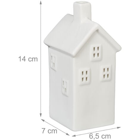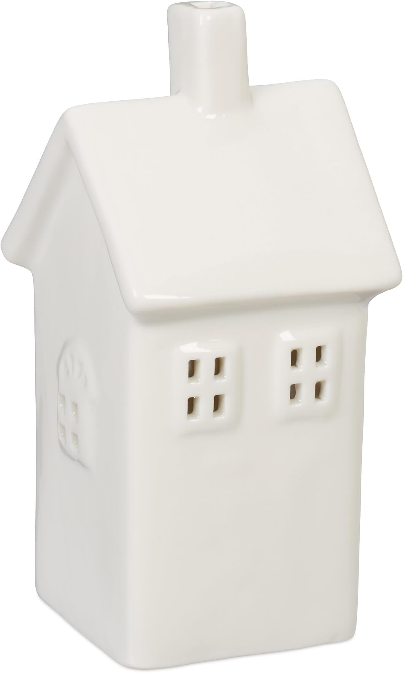 Relaxdays Teelichthaus Keramik, Leuchthäuschen Für 1 Teelicht, H X B X T 13 5 X 6 5 X 7 Cm Teelichthalter Haus Weiss
